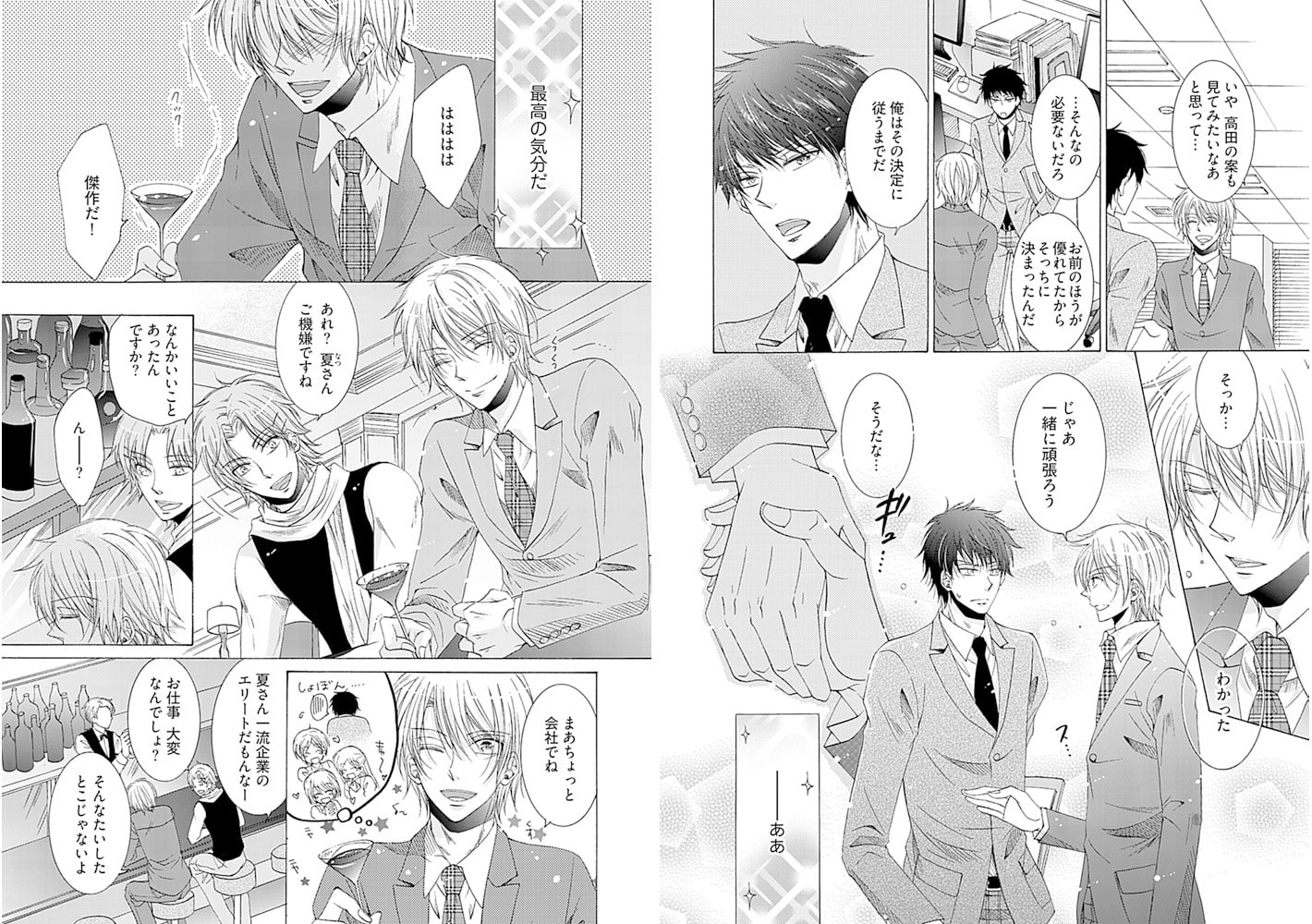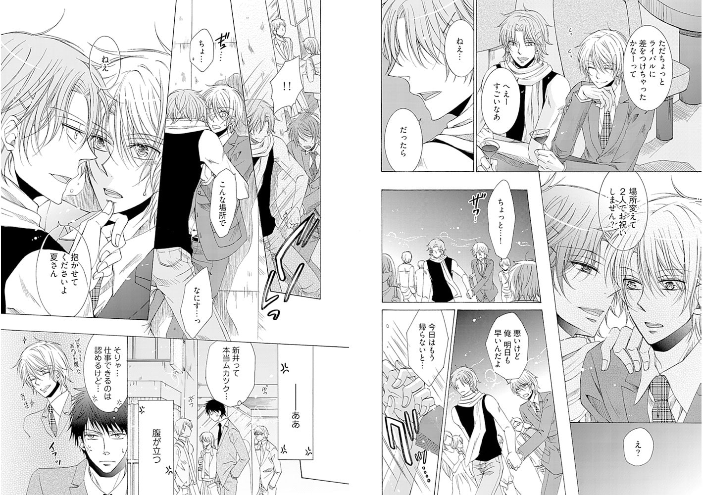 仕事ができてモテモテの新井になにかと負けてばかりの高田。今日も仕事で凹まされ、やさぐれモードで帰宅していると、にっくき新井が男とキスしているのを見てしまい--。口止めを仕掛けてくるライバルの素顔は、まさかの…v 悪魔の誘惑に真面目リーマンは!?
