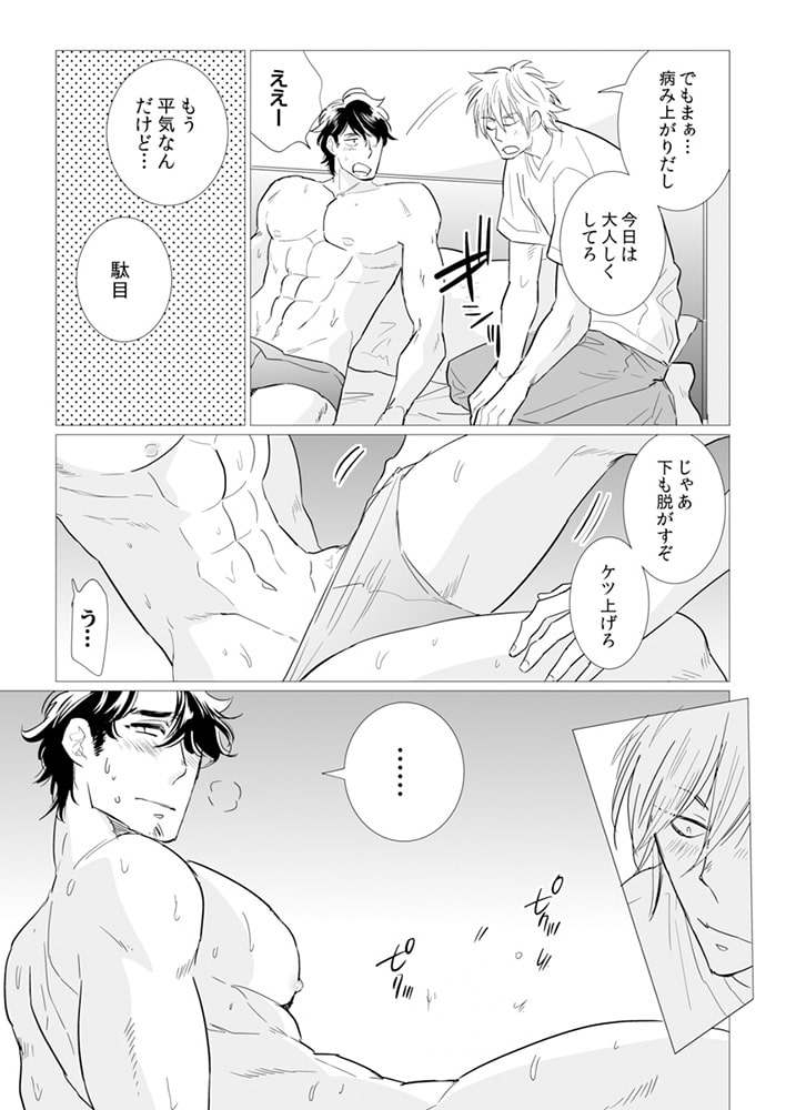 売れっ子タチ専門のゲイAV男優の大輝と蒼吾は犬猿の仲!そんな二人の元に飛び込んだ新しい仕事は、なんと大輝と蒼吾の絡みのAV撮影だった!タチ専門、しかも大っ嫌いな相手に掘られるかもしれない仕事なんてやってられるか!と一度は断るも、敏腕監督に言いくるめられこの仕事をうける事に…。しかし、撮影までに少しでも仲良くなれ。と手錠を掛けられ、ウィークリーマンションで一緒に生活することに!トイレに行くにも、シャワーを浴びるのも一緒で…その上、別の撮影にまで同行する羽目になり…!?