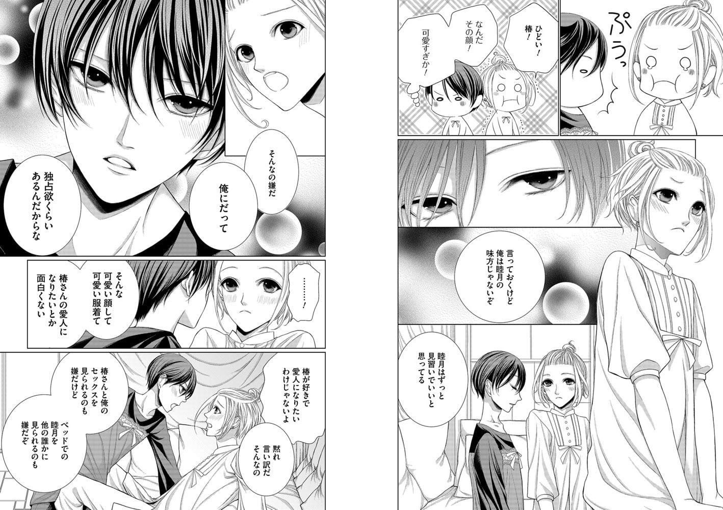 伊織のことはずっと特別な友人だと思っていた…伊織が兄、椿の愛人になるまでは。伊織が愛人をやめられないなら…と、伊織をラクにするために睦月も椿の愛人に志願する。ある晩椿に「三日後に一緒に伊織の元へ…」と言われ、見習いから愛人に昇格するぞ!と浮かれるが…。