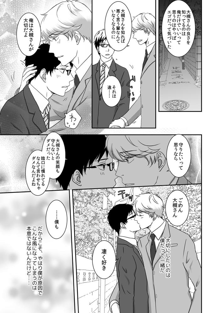 「メガネ外すと、思ったより幼いんですね。だから虐めたくなるのかなぁ」ノンケな後輩に押し倒されて、痛いくらいに乳首をキュッと抓られて…コレって夢?それとも現実!?――ゲイであることを必死に隠して生きてきた堅物リーマン・大槻。マジメすぎるが故に職場のチャラい後輩・二ノ宮とは衝突してばかり。なのに、そんな相手に惚れるってどうなんだ!と落ち込んでいたある夜、ひょんなことから二ノ宮を自宅に泊めることに。すると「俺のこと、オカズにして抜くくらい好きなんでしょ?」って迫られた挙句「ここ、キツくされる方が感じるよね」ってビンビンに勃起したアソコをグリグリと攻められてしまう。馬鹿みたいにキモチよくて思わず泣いちゃったけど…でも、なんで?なんでこうなった?