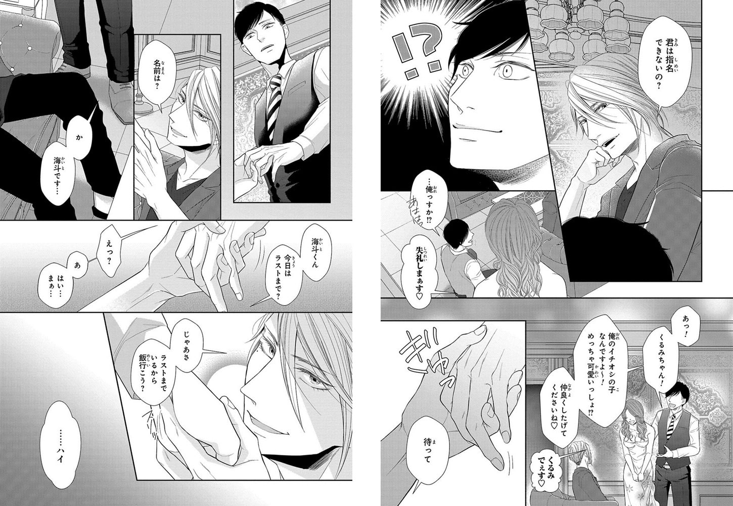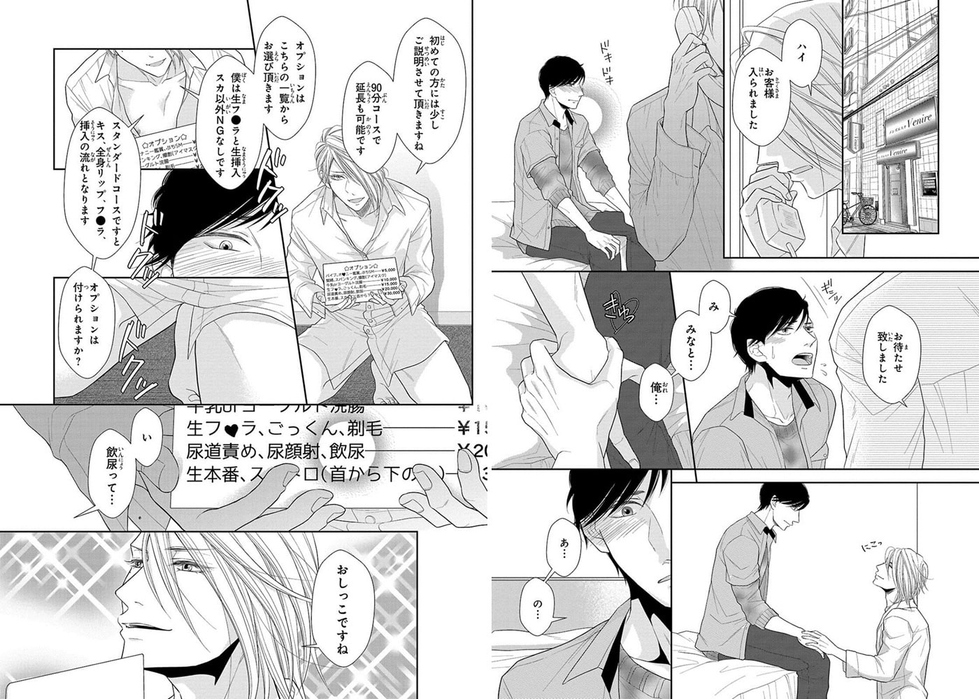 「はぁ…全部はい…った」安キャバで働くボーイ・海斗に乗っかっているのは、とんでもなく美人な“男”!?ある日、通りがかりの恐ろしく顔が整ってる男・湊をキャッチすることに成功した海斗。ところが、なぜか湊はかわいいキャバ嬢ではなく、ボーイの海斗をアフターに誘ってきて…。フェロモン垂れ流しの湊の正体はメンズソープで働く男娼だった!!湊とセフレになったノンケの海斗は“ア●ルセ●クスに嵌ってるだけ”と自分に言い聞かせるが、他の男の痕跡を湊の体に見つけてしまい――。快楽に弱いノンケ×ワケあり男娼の体から始まるエロきゅんラブ!