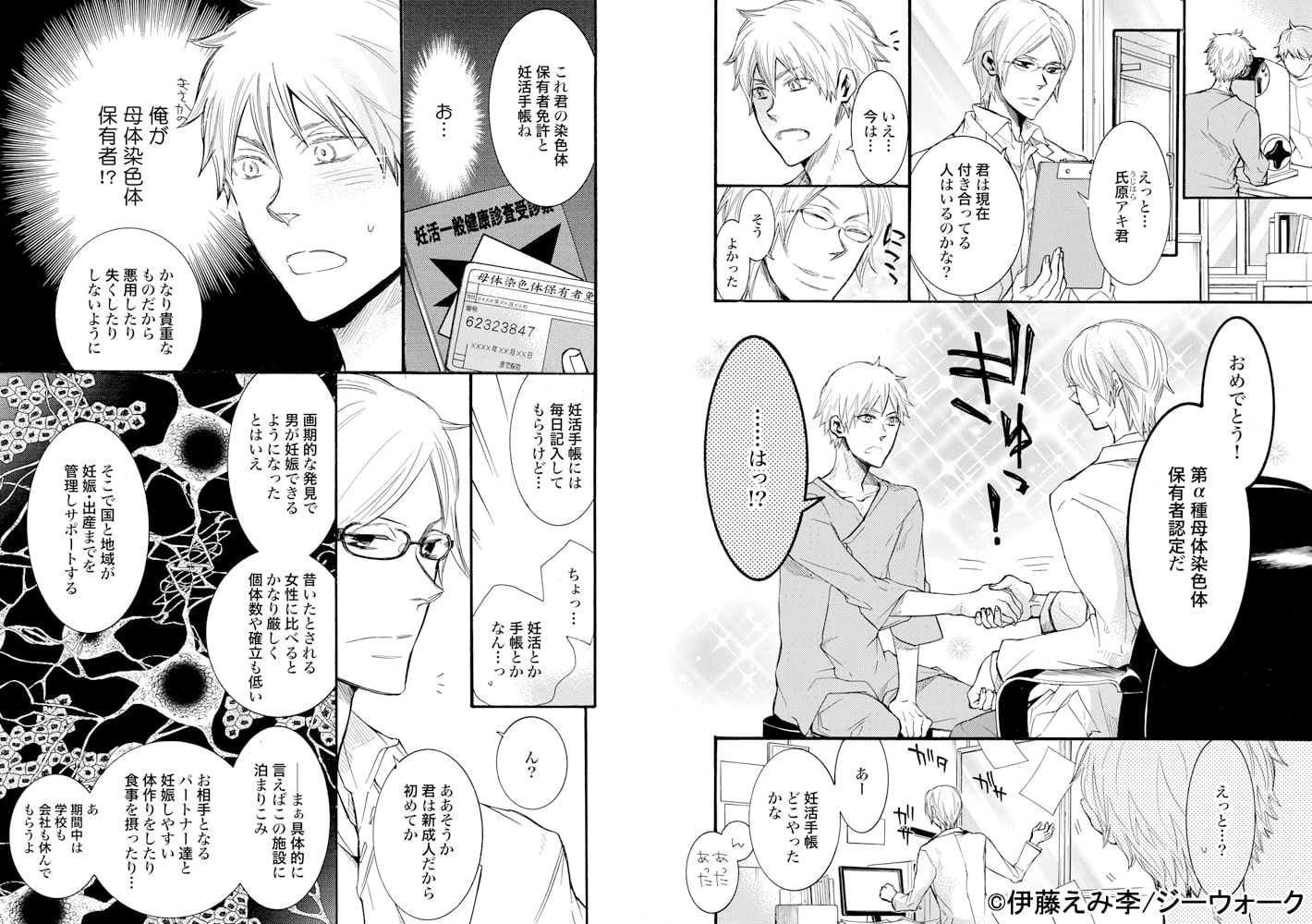 【俺、本当に妊娠なんかできんのかな…】近未来、この世界ではすでに女性は世からいなくなり、男同士の出産が義務付けられていた。新成人全員が受診した妊娠検査で、母体染色体の保有者であることが判明した氏原アキは施設での強○妊娠合宿を強いられることになる。種の存続のためパートナーとなった3人と日替わりで子作りに励むことになるアキ。アキは果たして妊娠することが出来るのか??。絆され、揺れ動くその気持ちは愛なのか??。