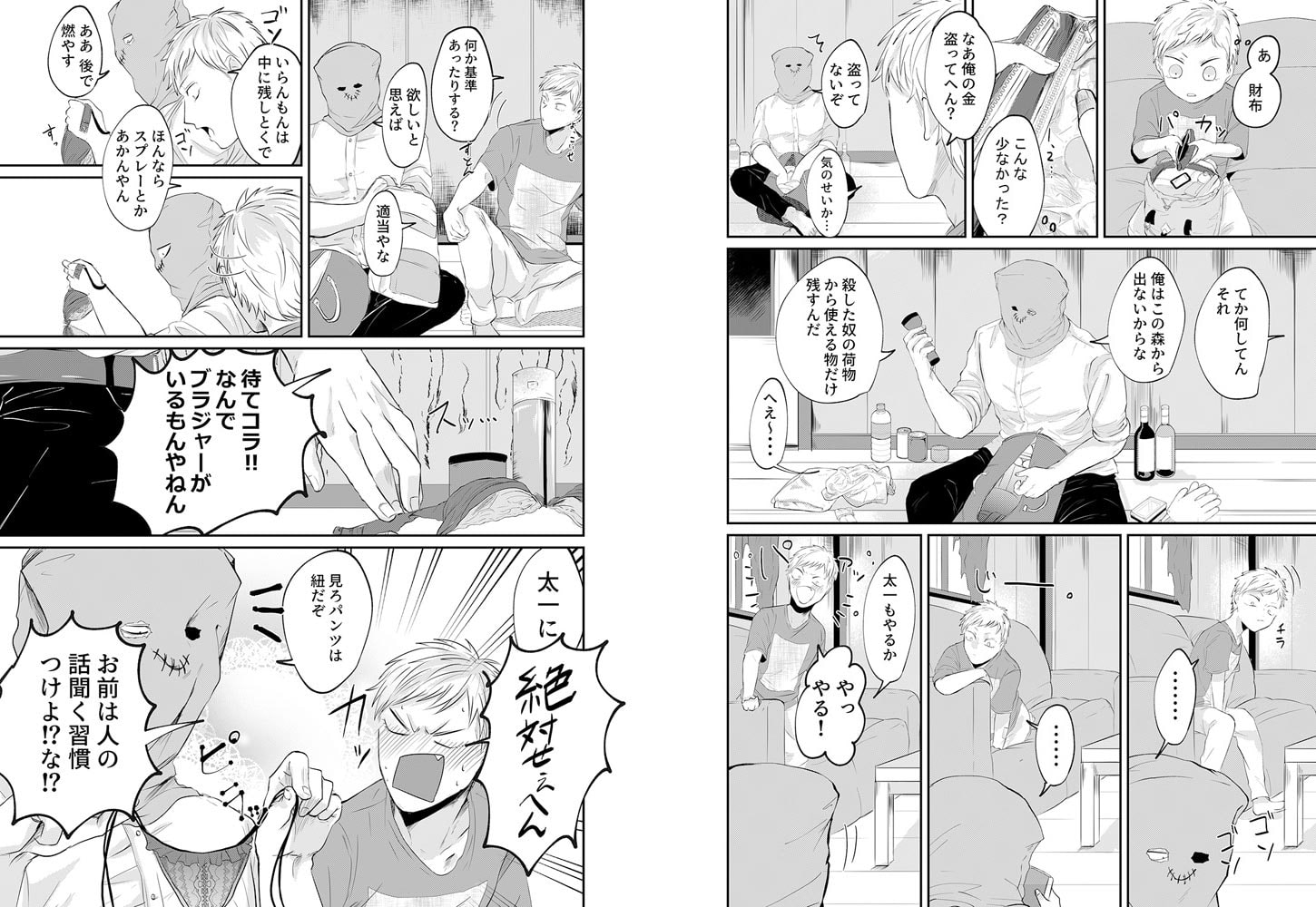 覆面殺人鬼に監禁されて処女を奪われました。─気が付くと知らない部屋で手足を縛られ監禁されていた太一。一人キャンプで殺人現場を見てしまい、殺人鬼に拘束されたらしい。俺の人生ここで終わりか…と思ったら耳を舐められた!なんやねん!かと思えば正面に椅子を置いて静かに見つめ始めた!ホンマになんやねん!!拘束を解かれたと思えば「惚れた」!?俺も殺しの対象ちゃうんかーーーい!!!!何とか逃げ出そうと自分も惚れたと嘘を吐いたら、いきなりデカすぎるアレを突っ込まれて!?慣らされていないせいで痛いはずなのに、どんどん気持ちよくなってきて…「声…抑えるな」アカン…はよ…イって…っ!覆面殺人鬼と関西人の歪な同居生活が今始まる!!