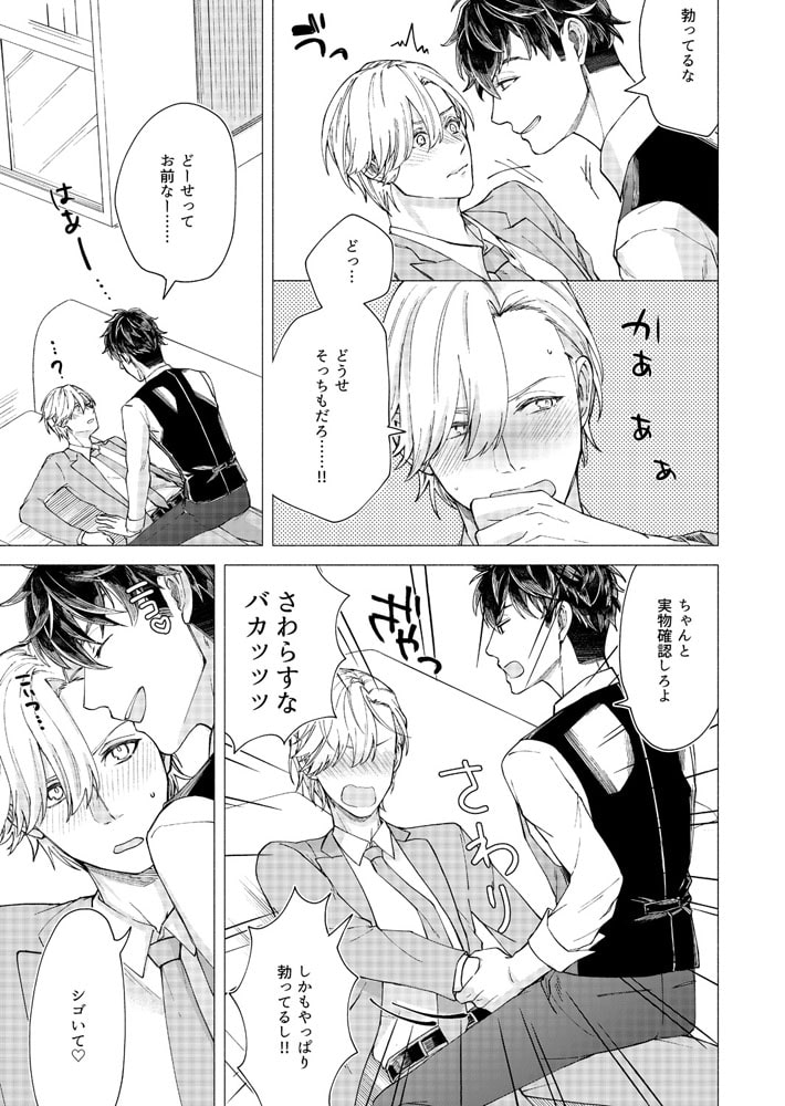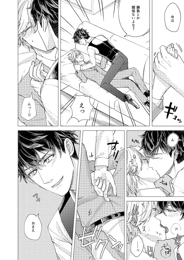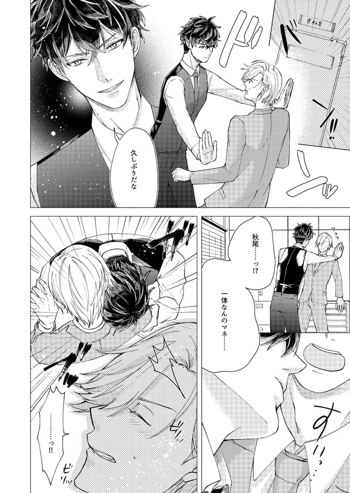 「バカ、そんなとこ触るな…アァッ!」営業成績トップのサラリーマン・秋尾は、神経質な同期の冬野が苦手だった。仕事のやり方も性格も真逆で犬猿の仲…なのに、ある日2人っきりで泊まり掛けの出張に行くことに!しかもホテルまで同室だって!?アイツと一晩過ごすのか…と憂鬱な気持ちでドアを開けると、奥から何やら音がする。覗いたらそこには、ア〇ニー真っ最中の冬野が!?バイブを尻に突っ込みアンアン喘ぐ堅物同期の姿に、思わず股間は反応してしまい…。興味本位でチ〇コを挿入れてみれば、なんだよ案外イケんじゃね?これは良いオモチャ見つけたな。バイブじゃ届かない奥まで攻めて泣かせてやるから、もっとエロい顔見せてみろよ!!