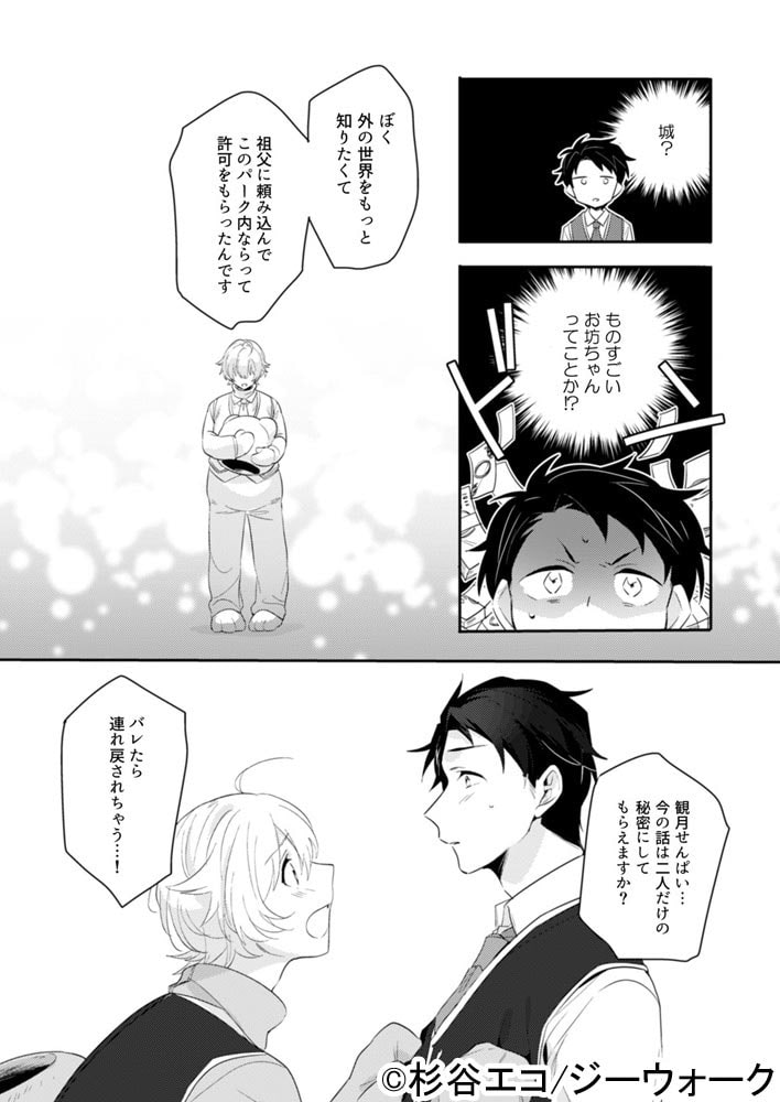 有名テーマパークで働く「頼れる先輩」観月清史郎(みづきせいしろう)には気になっている後輩、森園嵐(もりぞのあらし)がいた。しっぽのついた可愛い着ぐるみバイトで汗だくになりながら、いつも頑張っている、彼。実は、テーマパークの箱入り息子のお坊ちゃんであるという秘密を伝えられた観月は、彼のために世間のことやエッチなことも…先輩として教えていくことに。時にはコーヒーカップで回りながら、時にはジェットコースターで絶叫しながら、場所を選ばずエッチしまくる。だが、森園にはある秘密があり…? 絆を深める二人の未来は果たして。