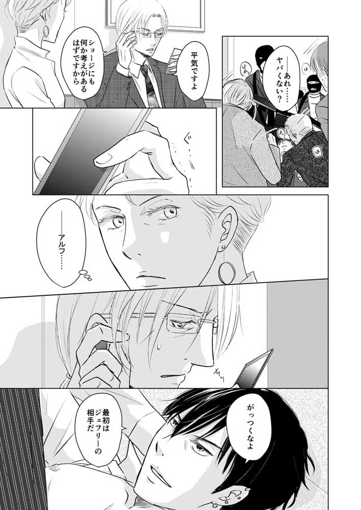 コンビを組んで犯罪組織と戦うショージとアルフ…ショージは【オメガ】ながらも、努力の末に特殊捜査官に所属するが、突然体を襲う「発情」は抑制剤を飲んでいても止める事が出来なかった。ショージの後輩にあたるアルフは彼の発情を抑えることの出来る唯一の【アルファ】だったが、その性質上、一度交尾を始めると、お互いが達するまで止める事は出来ない…お互いを求め合う姿はまるで獣――後輩と先輩、オメガとアルファ…ばら撒かれた糸の様な複雑な感情は、組織と言う閉鎖された空間の中でどの様に絡み合っていくのか…