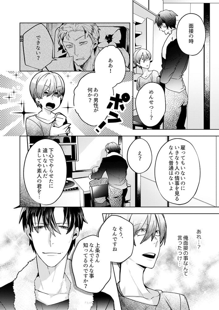 「挿れただけで漏らしたのか?さっきまで処女だったのに」―貧乏な俺は、金のためにゲイビ男優になるべく面接へ。しかし童貞のせいか勃起すらせず失敗…。明日にもアパートを追い出されそうなのに…と思い悩んでいたとき、お隣さんに声をかけられた。渋くて優しいお隣の上条さんは、いつも親切で…そんな上条さんを見ていたらつい「SEXのヤリ方、教えてください!」って叫んでしまい!? チ〇コをシゴかれて、ケツの穴にごつい指がジュポジュポ出たり入ったり。しかも限界まで焦らされて「もうイキた…ッイカかせくださいッ!!」って鳴きながらメスイキさせられて。初めて知った男同士のア●ルセックス、こんなにきもちイイものなのか!?