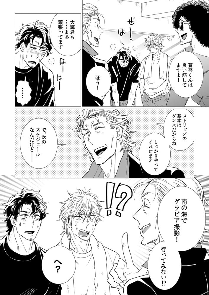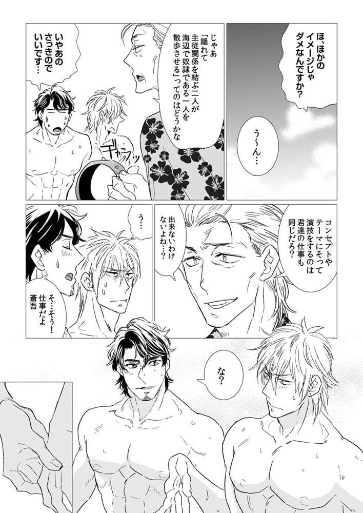 売れっ子タチ専門のゲイAV男優の大輝と蒼吾は犬猿の仲!そんな二人の元に飛び込んだ新しい仕事は、なんと大輝と蒼吾の絡みのAV撮影だった!タチ専門、しかも大っ嫌いな相手に掘られるかもしれない仕事なんてやってられるか!と一度は断るも、敏腕監督に言いくるめられこの仕事をうける事に…。しかし、撮影までに少しでも仲良くなれ。と手錠を掛けられ、ウィークリーマンションで一緒に生活することに!トイレに行くにも、シャワーを浴びるのも一緒で…その上、別の撮影にまで同行する羽目になり…!?