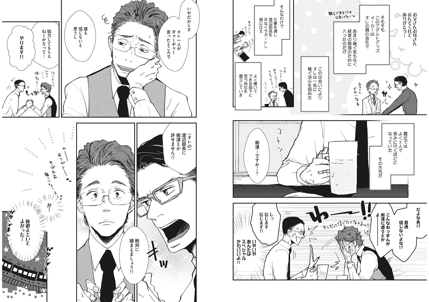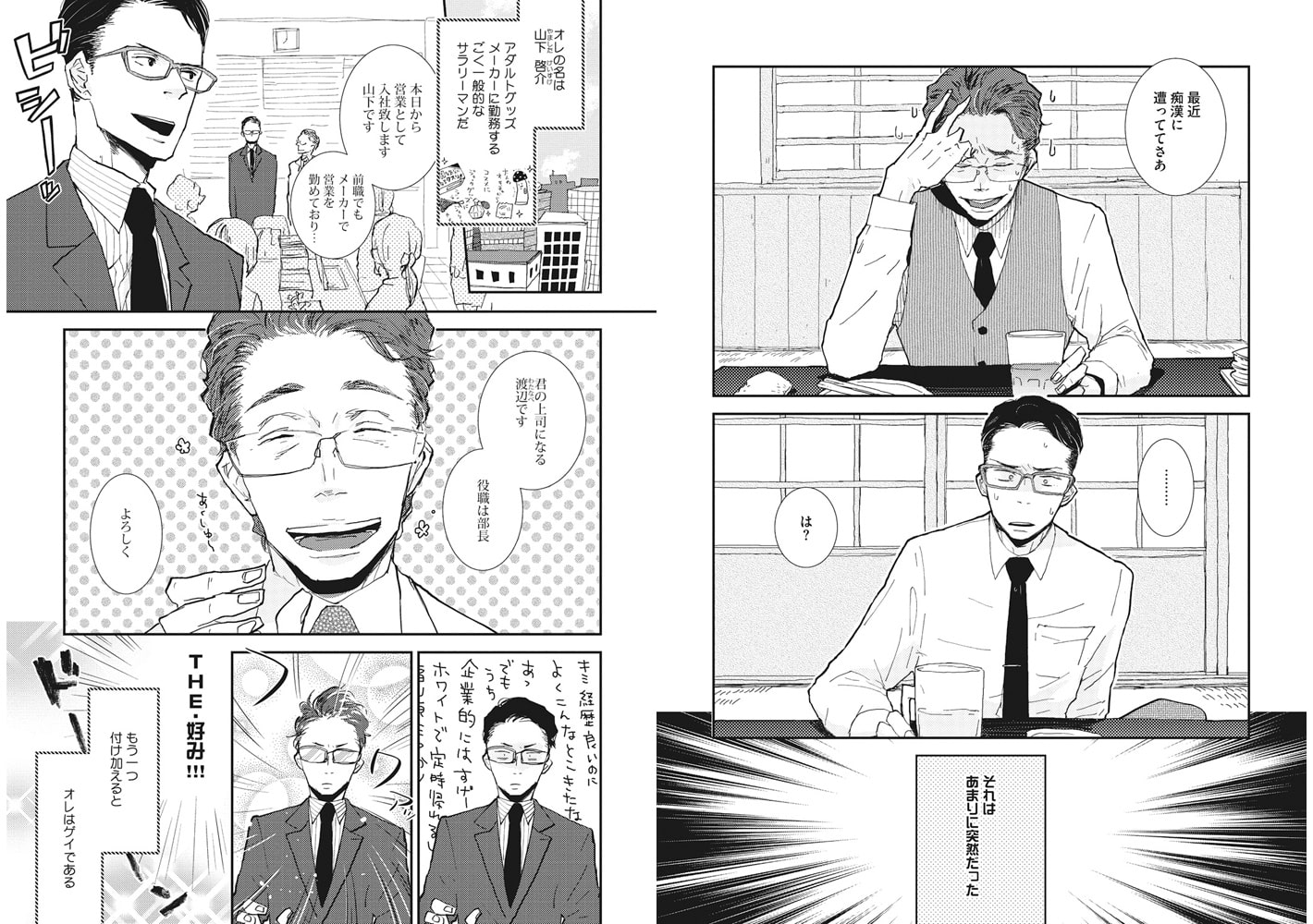 アダルトグッズメーカーに勤務する山下は、ある日、好みド真ん中の渡辺部長から痴○に遭っていると相談される。(オレの)部長に痴○するとは許せない!と、山下は部長と一緒に満員電車に乗り込んだ。すると、ほどなくして部長が赤面しながらもじもじと身体をくっつけてきて――!? 【痴○に触られて勃起しちゃうなんて…】