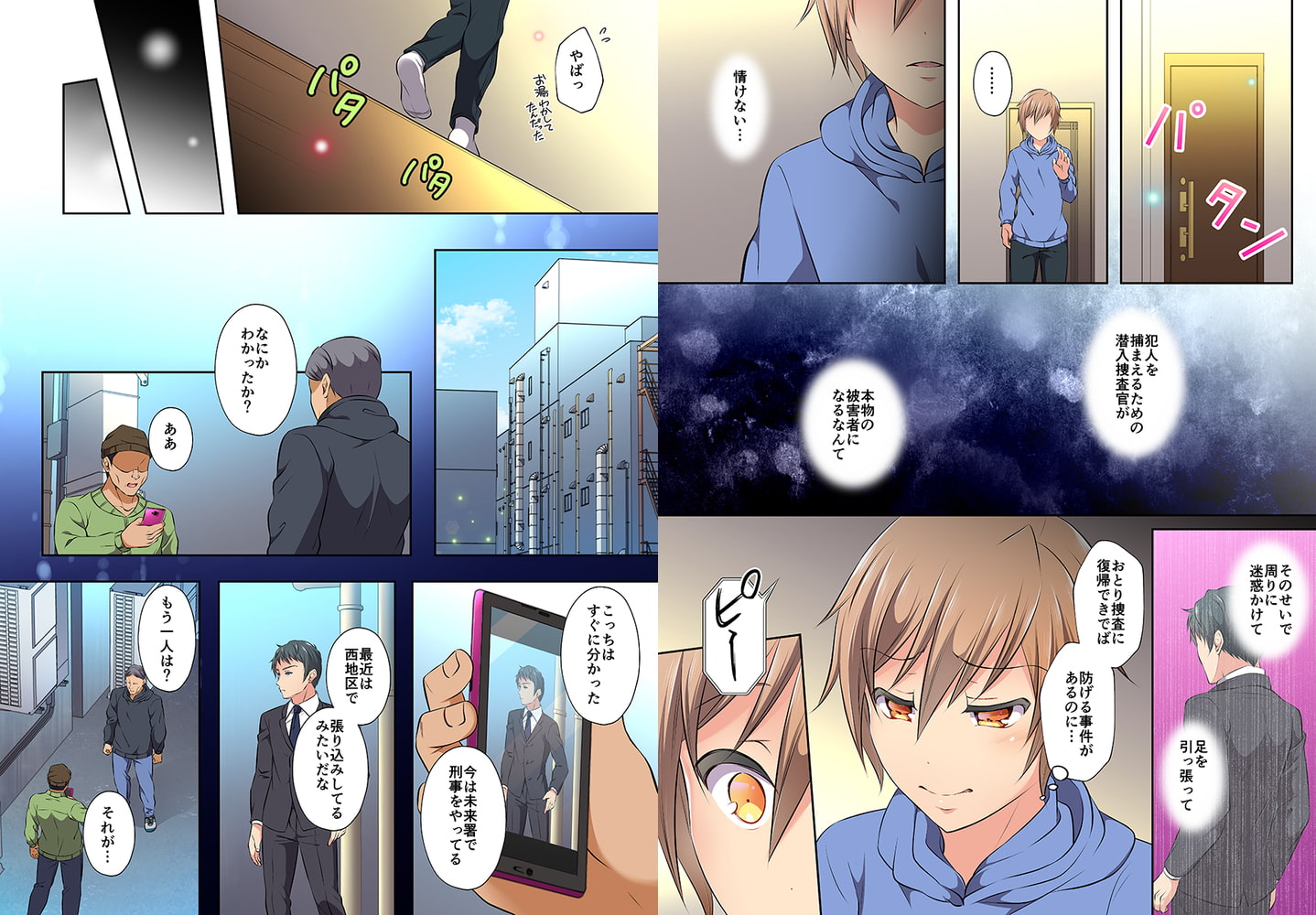 学生にしか見えないかわいい見た目を生かし、恋人である霧島の指示のもと潜入捜査官として犯罪現場の捜査を行う日向(ひなた)。今回の事件は痴○。獲物はすぐにエサにかかった。犯人は慣れた手つきで日向の乳首を弄り、アソコをまさぐり始める。歯を食いしばり必至に耐える日向だったが、カラダは徐々に反応し、甘い吐息が漏れ出す。これは捜査なのに…恋人の霧島が音声を聞いているのに…感じてしまう日向。しかも犯人は予想以上の大人数。身動きが取れないのをいいことに全身を弄られ、舐めまわされ――こんなのッ…耐えられない…。果たして日向は無事、犯人を取り押さえることができるのか!?