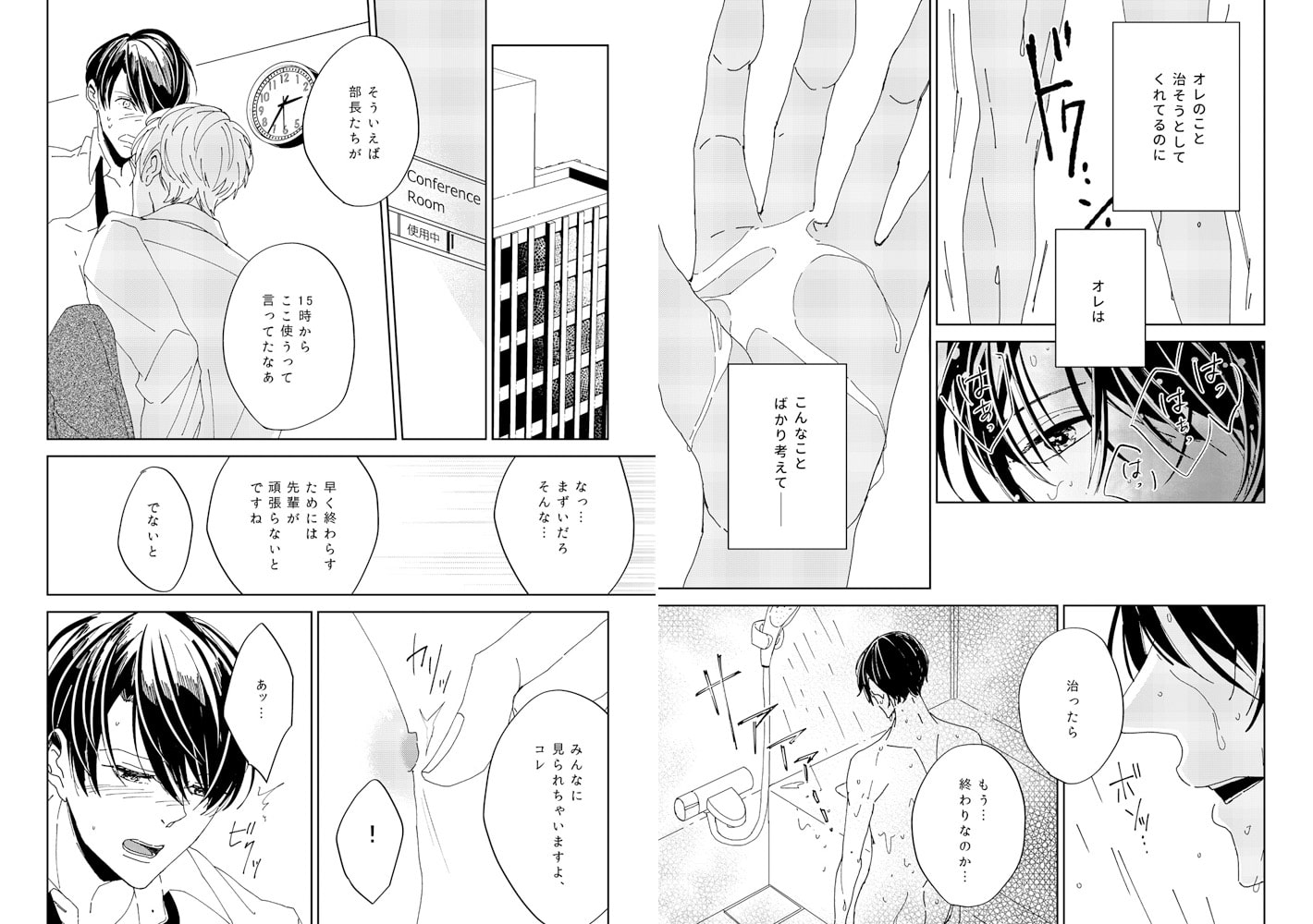 「気持ちいいですか?乳首勃ってきましたね」――仕事ができて人望も厚いカンペキ人間の朝比奈。唯一の悩み…それは、乳首が陥没していること。こんなの誰にも内緒のはずだったのに、慰安旅行で行った温泉で、よりにもよって一番苦手な後輩・望月に見られてしまう!バカにされるかと思いきや、「僕が吸って治してあげます」なんて真剣な顔して乳首に吸いついてきて!?イヤらしく舌先で刺激され、乳首どころか下半身まで盛り上がっていく…。さらに“治療”はエスカレートし、チ〇コは舐められ、ついには後ろの穴もイジられる。こんなの治療じゃないのに、感じはじめた俺の陥没乳首が…!?