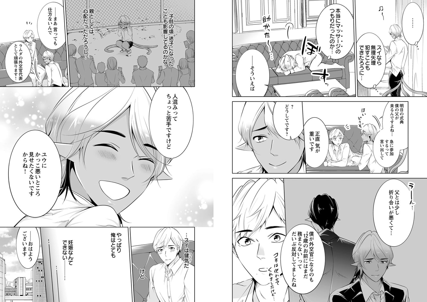 『3ヶ月間、異星人・ラムダの外交官の世話をするように』と命じられた自衛隊員・星島 結(ほしじまゆう)。世話係としてラムダ人外交官のスイを出迎えた結だが、その日の夜、「会いたかった、ユウ。ずっと…!!」と一方的に熱い抱擁をされたかと思えば、いきなり触手のような長い尻尾に捕らわれてしまう。しかも何故か、スイの子供を産んでほしいとお願いされ――!?