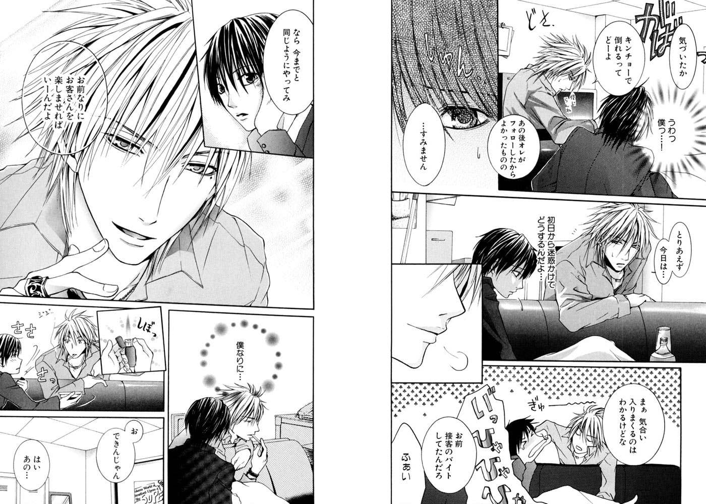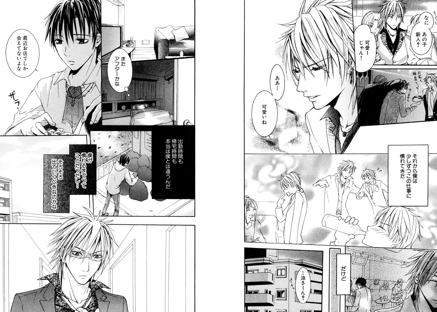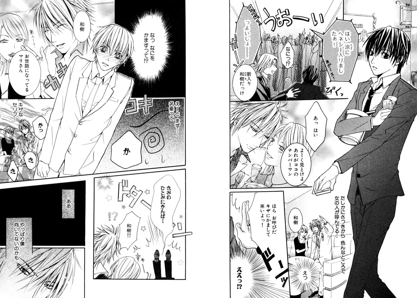 ホストクラブの新人・和樹は、緊張&空回りで失敗ばかり。みかねたナンバーワンの涼が面倒を見ることになり、その手ほどきで和樹は癒し&甘え系ホストに大変身!