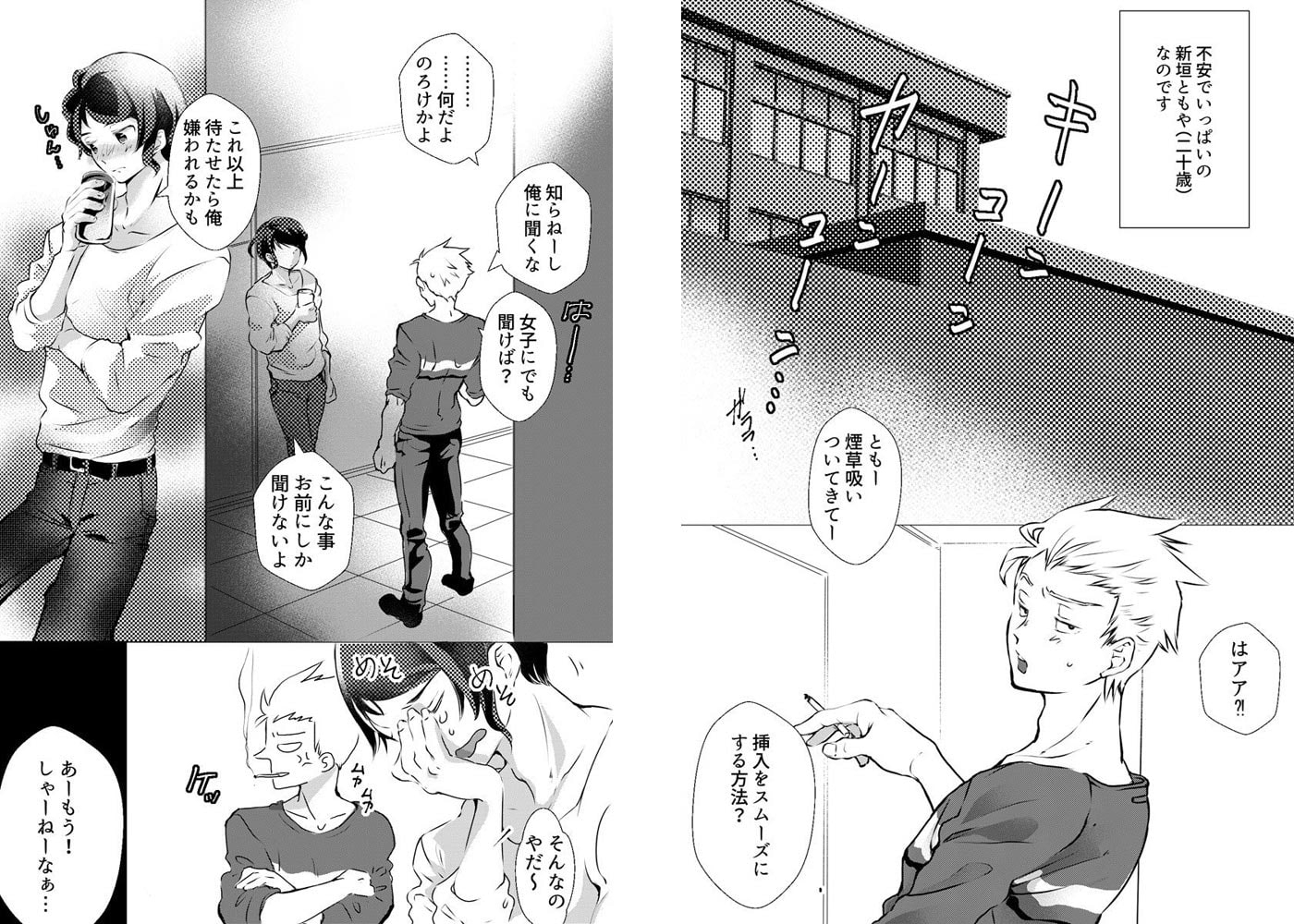 恋人とのセックスが怖い。どうしても最後までできないトモヤに、年上の恋人、国也はいつも優しくしてくれる。でももう五回も失敗しちゃってるし、このまま待たせたら愛想を尽かされてしまうかもしれない。思いきって親友のアキラに相談してみたら、なんと媚薬を貰ってしまった。試しに媚薬を飲もうとするが、うっかり手が滑り用意した晩御飯にたっぷりとかかってしまった。慌てるトモヤをよそに、国也は媚薬のかかったおかずを食べてしまう。…が、特に変化はなかったので安心して、トモヤも媚薬のかかったご飯を食べた。その夜。半裸の国也がいきなりトモヤに襲い掛かってきたのだ。あの媚薬は効果絶大だった!普段は温厚で優しい国也だが媚薬のせいで、別人のように激しく愛撫してくる。強引に二人のモノをこすり合わせて達した国也は、怖くて泣くトモヤを言葉でゲスに責めたてる。国也は自分に身体を開かないトモヤの愛を疑い嫉妬し欲をぶつけてくる。別れたくないトモヤは必死に勇気を出して、初めて国也のモノをお口に咥える。媚薬の力でめちゃくちゃに乱れ狂う2人の濃厚初セックス。媚薬で盛って勃起が治まらない国也にトモヤは朝まで何度も何度もハメされ続ける。オリジナルボーイズラブコミック