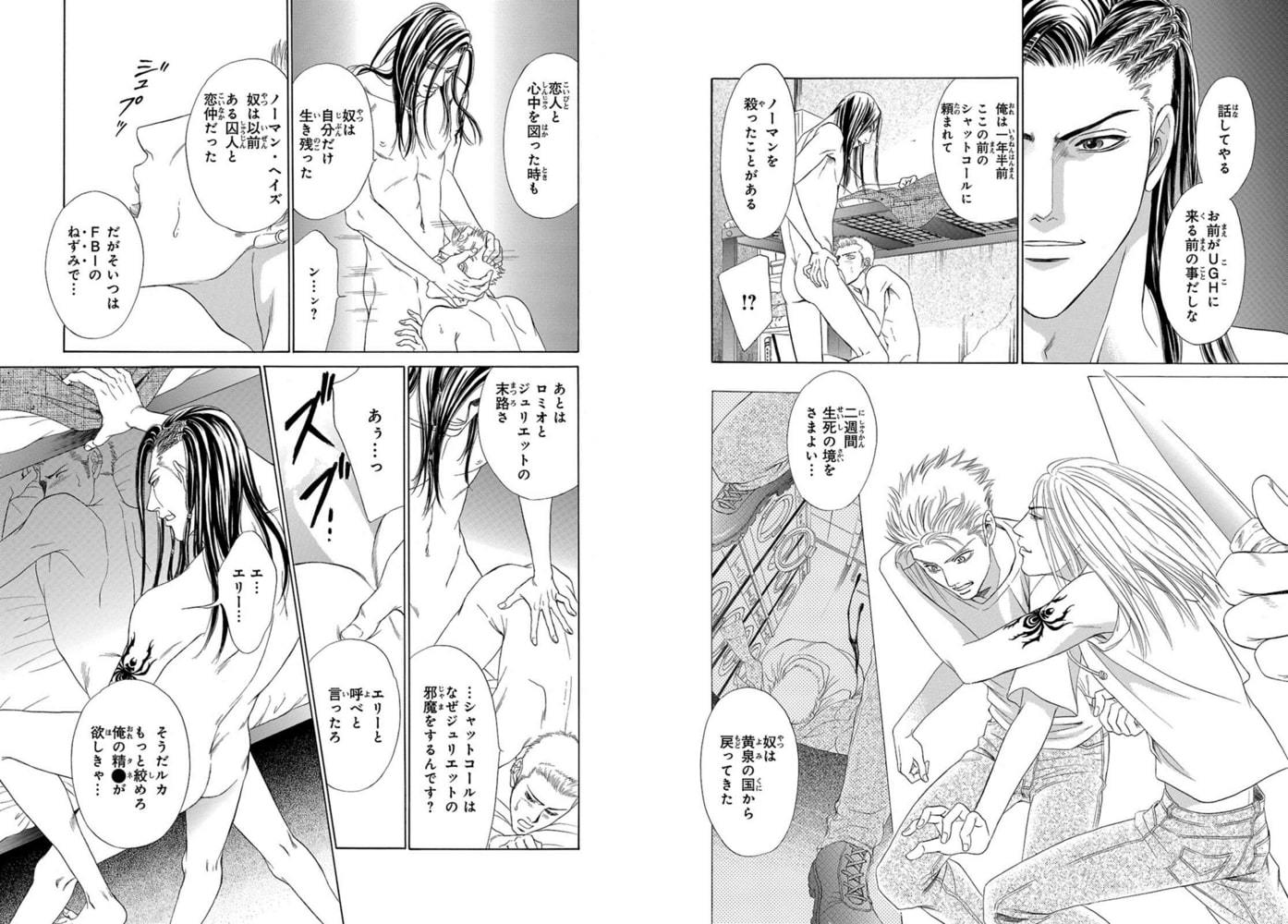 地下30Mに造られた脱走不可能な監獄合衆国刑務所「アンダーグラウンドホテル」。レベル3の受刑者達が収められた太陽に見放された場所…。この監獄のシャットコール(親分)・エリーは行為の最中、ノーマンが自殺しようとしている姿を発見する。とある理由から自殺を繰り返すノーマンは、その度にエリーに邪魔をされていて…それぞれの思惑が複雑に交差し、激しい烈情が蠢く!この閉ざされた空間で繰り広げられる、危険でハードな愛ー 大人気「アンダーグラウンドホテル」のその後を描く新章「KISS&KILL」、「LAST DINNER」、「CROSS OVER」+3作品の扉イラストギャラリーを収録!!