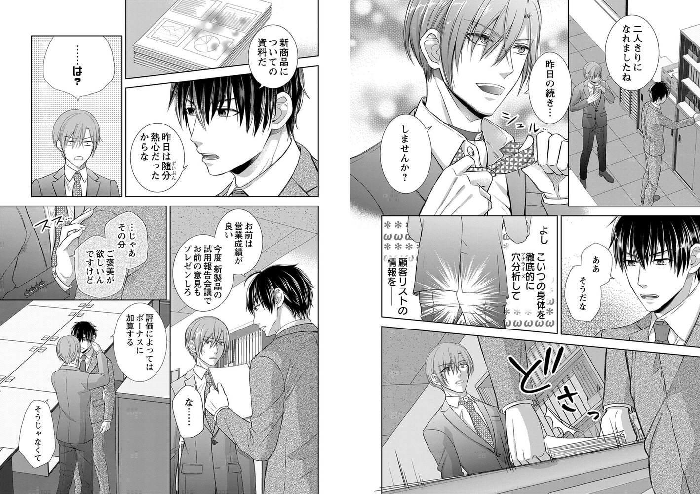 ――尻穴から入れた物の情報を得ることができる『穴分析(アナライズ)能力』を持つ美月零夜(みづきれいや)は、父親を自殺に追い込み家族をバラバラにした芹沢グループへの復讐のため、傘下の会社へ企業スパイとして潜入した。ターゲットは芹沢グループの会長子息であり零夜の上司の芹沢建人(せりざわけんと)課長。極秘書類とされる顧客リストに関する記憶と情報を彼から盗み、そのリストを漏洩させることで、芹沢グループの信用を失墜させ破滅に追い込もうと目論んでいる。そのためにはまず、誘惑して尻穴に生ハメさせなければいけないのに、「自ら試用するとは営業課の鑑だな」と新製品のパールディ●ドをブチ込まれ……情報を盗ませないつもりか!?