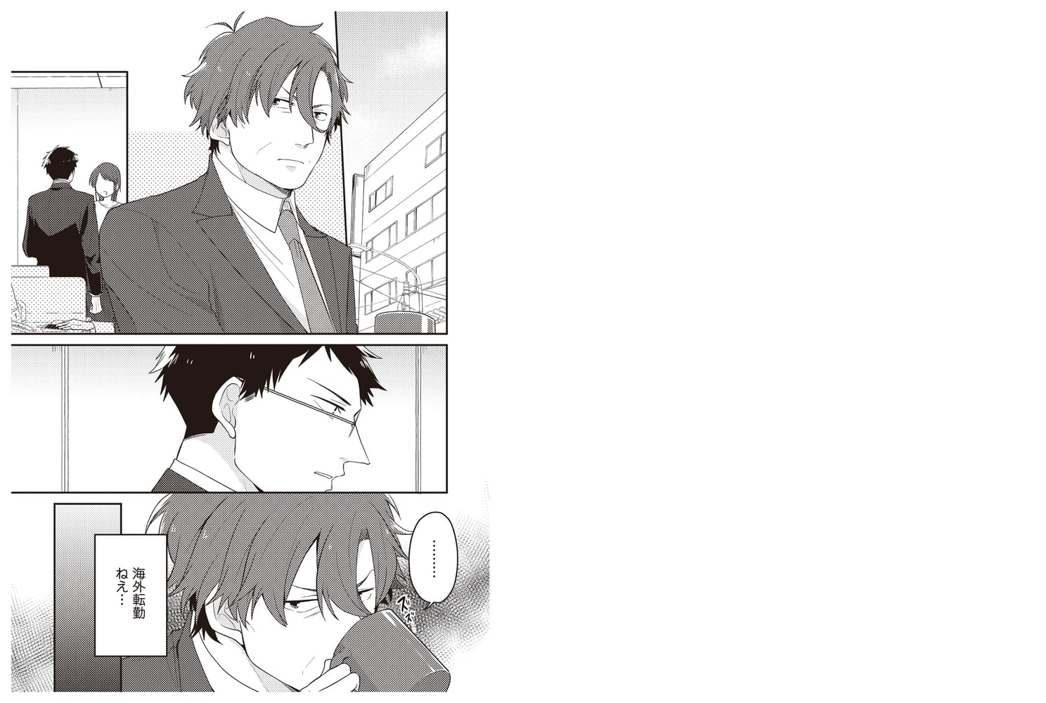百瀬の海外転勤に腹を立てる五十嵐。