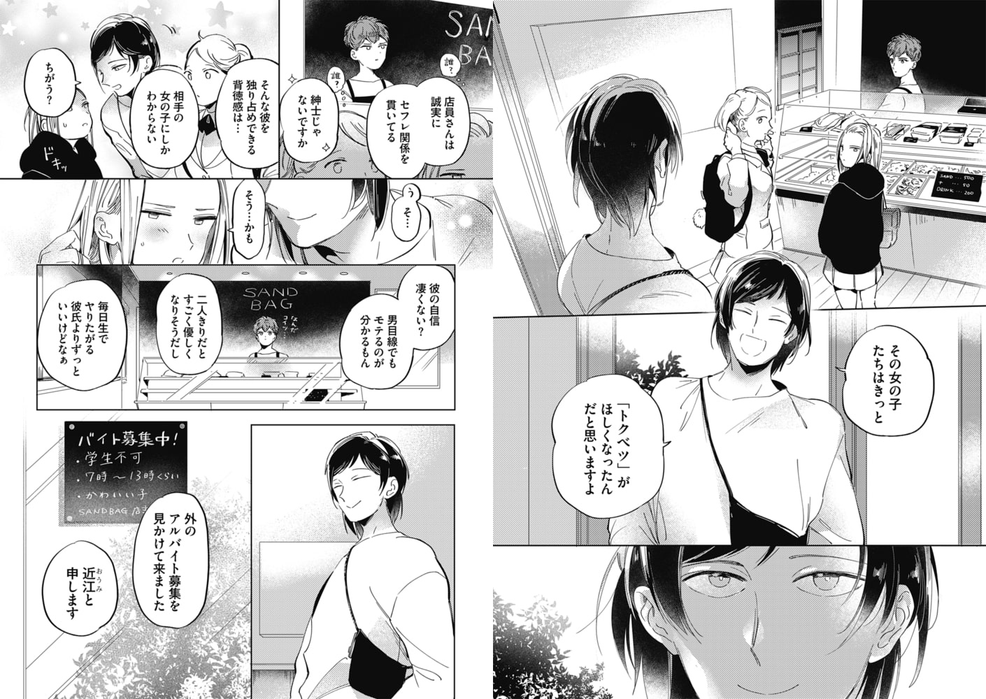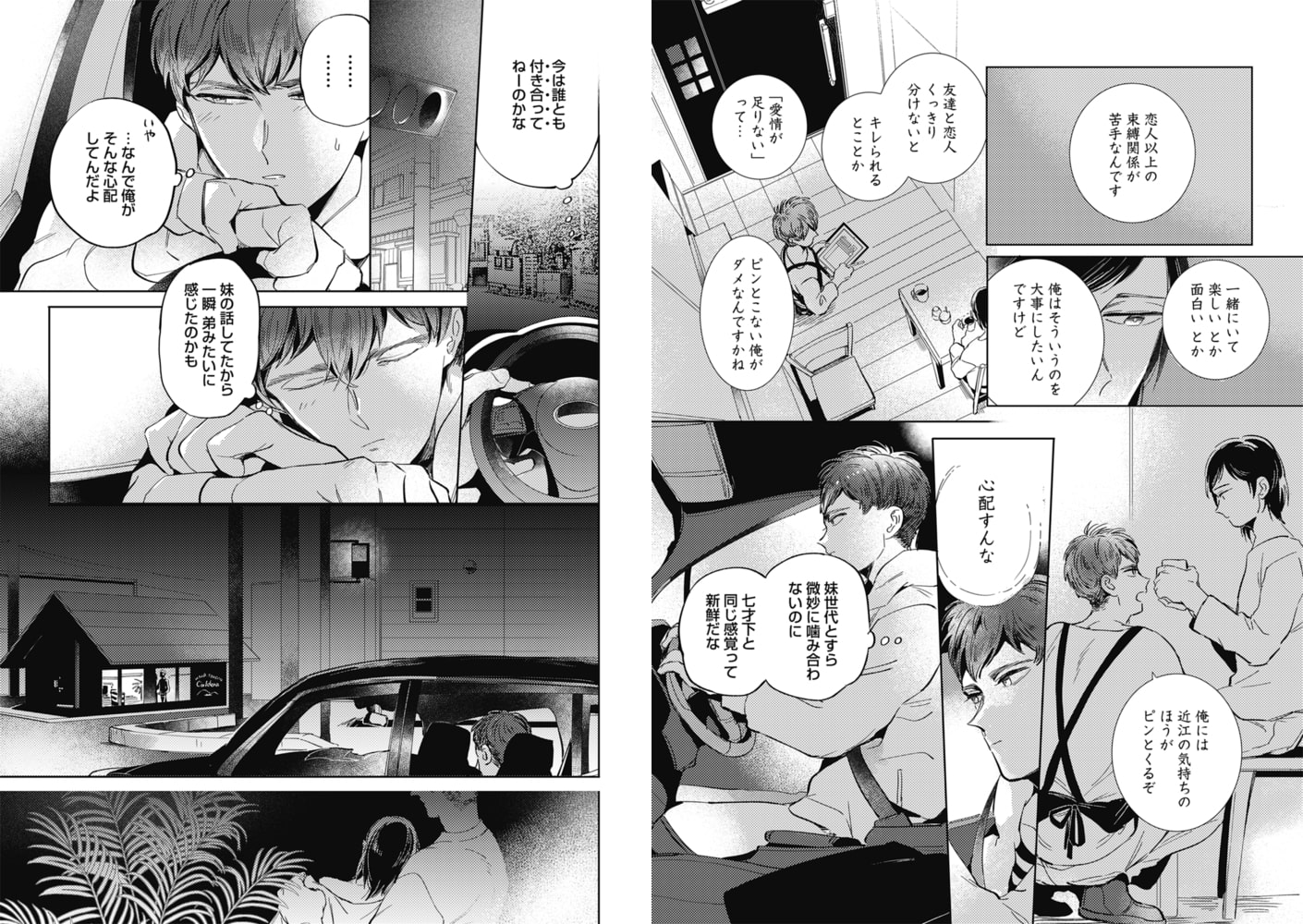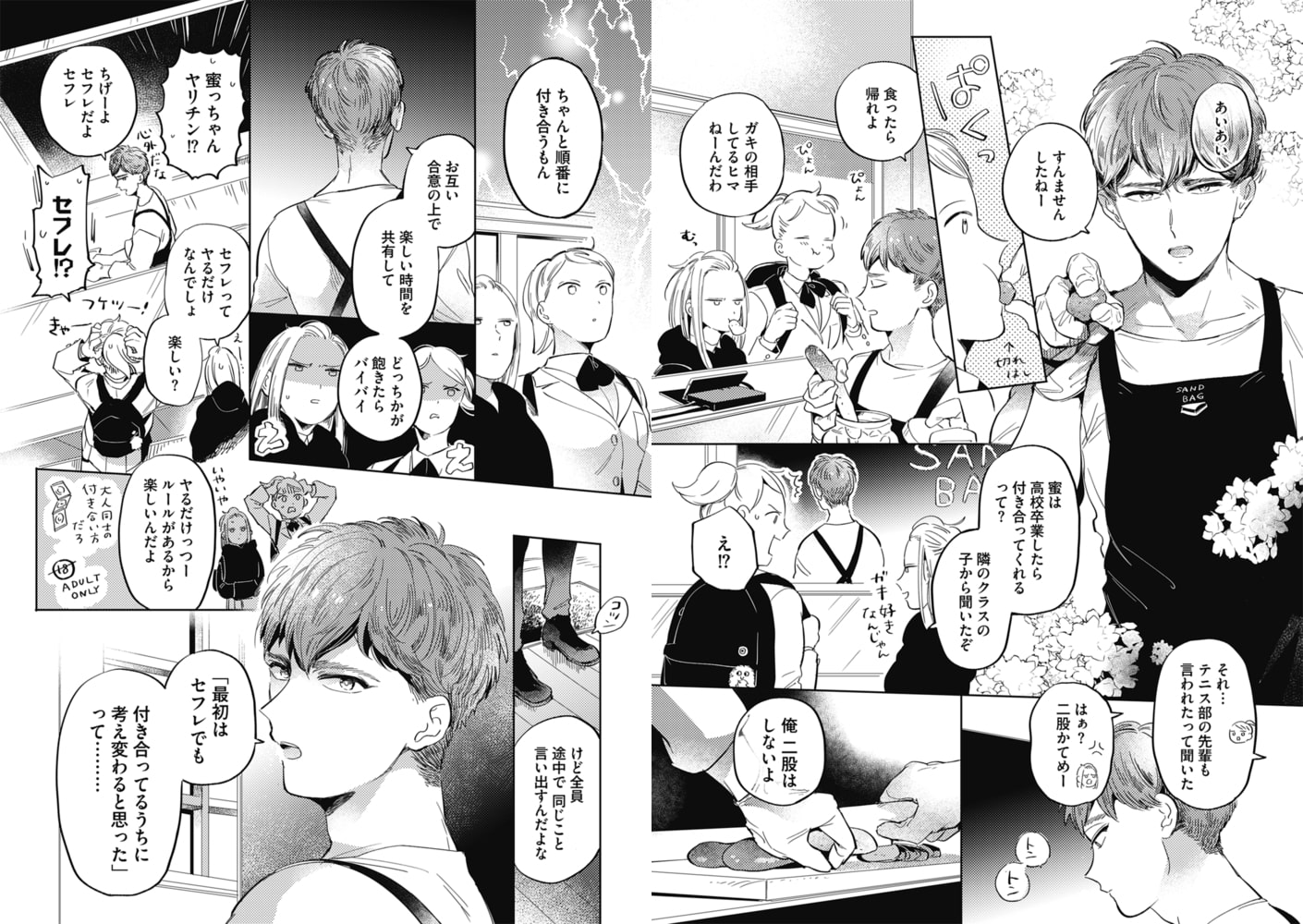 ●赤星ジェイク[やみつきセフレナーデ Opus1]束縛される関係が苦手なはずだったノンケの蜜。謎めく美人・近江と美容師・福釜と出会ったことで…!!?