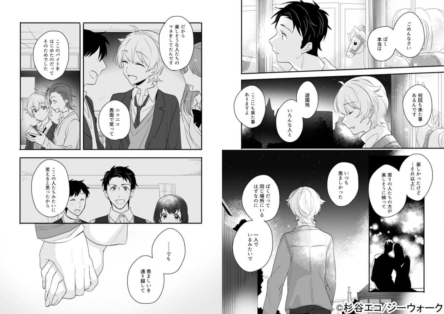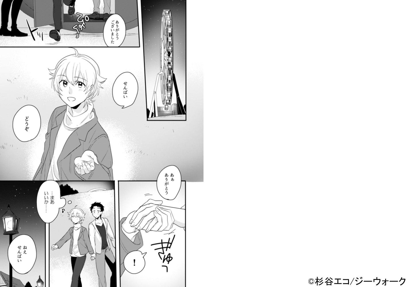 有名テーマパークで働く「頼れる先輩」観月清史郎(みづきせいしろう)には気になっている後輩、森園嵐(もりぞのあらし)がいた。しっぽのついた可愛い着ぐるみバイトで汗だくになりながら、いつも頑張っている、彼。実は、テーマパークの箱入り息子のお坊ちゃんであるという秘密を伝えられた観月は、彼のために世間のことやエッチなことも…先輩として教えていくことに。時にはコーヒーカップで回りながら、時にはジェットコースターで絶叫しながら、場所を選ばずエッチしまくる。だが、森園にはある秘密があり…? 絆を深める二人の未来は果たして。