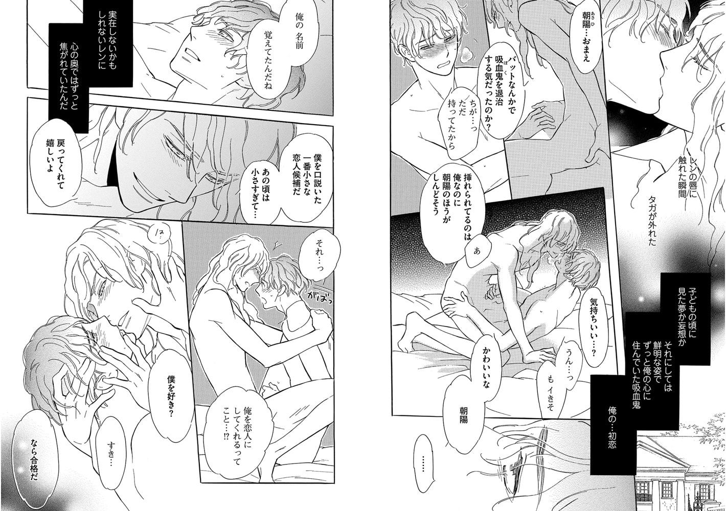 子どもの頃にあこがれていた吸血鬼のレンに再会して「俺、立派な吸血鬼になる」と宣言した朝陽。住む場所がなかった朝陽は、その日からレンの家で一緒に生活を始める。レンとの契約を果たして吸血鬼化を待つ朝陽だが、もしレンに捨てられたら…と、その後の孤独な人生を思って不安な気持ちが高まっていく…。