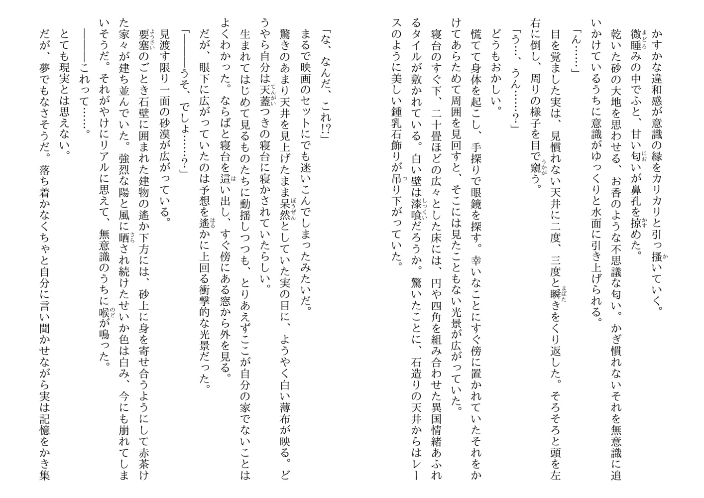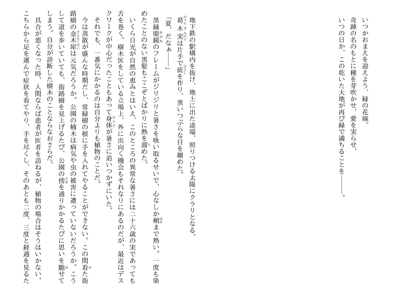 植物好きが高じて樹木医となった葛木実はある日、突然激しい眩暈に襲われ…気づくと砂の大地が広がる異世界にいた。そこアラバルカはかつて神との契約で緑を失ってしまった国。植物を甦らせる力をもつ<緑に愛されたもの>である実に、ぜひ力を貸してほしいという。紳士的でやさしい若き王サディーク。大胆不敵で頼れる双子の弟イザイル――ふたりから等しく注がれる熱い想いを受けとめながら、実の波瀾の日々が始まっていく…。