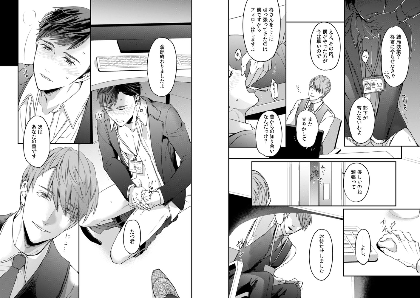 誰もいない夜のオフィスで、るいへお口でご奉仕させられたり、グチュグチュとお互いのものを擦り合わせたりして、イかされまくりのたつ。しかもイった直後でトロトロになっているところに、アナルに指まで挿れられそうになり…!?