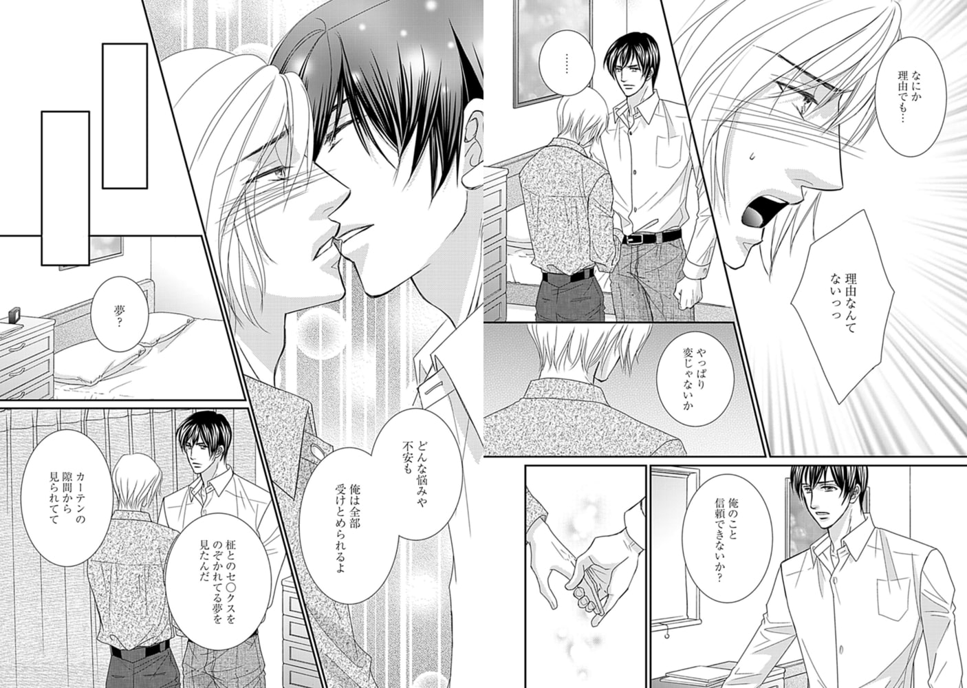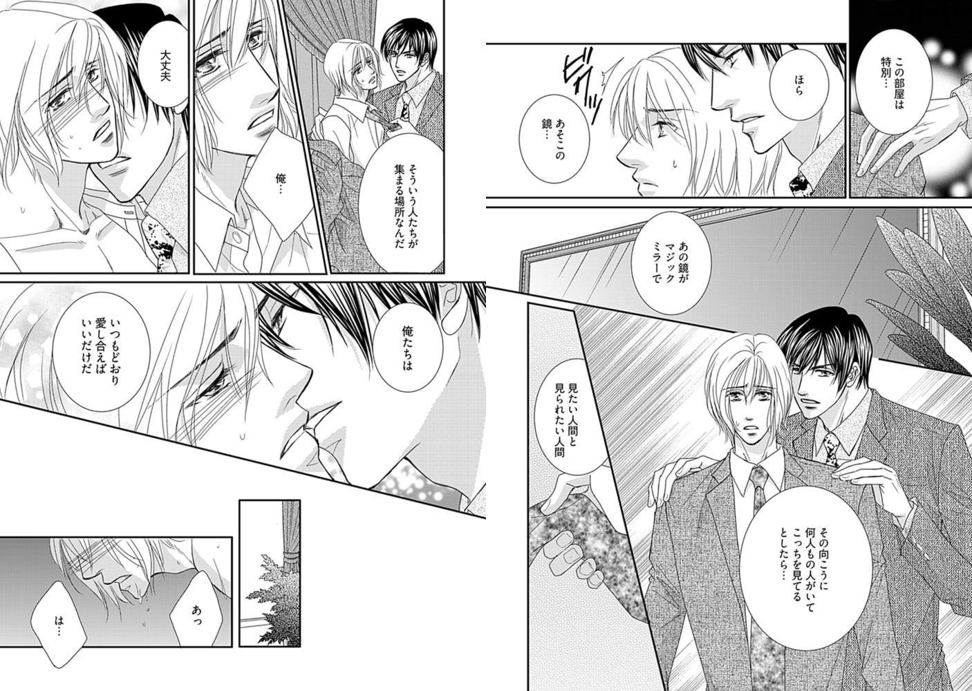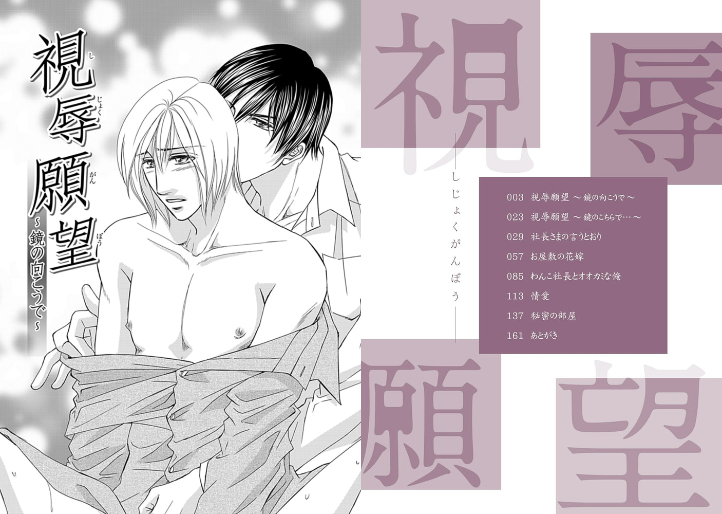 奥手の涼は、恋人とするいたって平凡なマニュアルどおりのセックスに満足していた。ところがある日、セックスを他人に見られていると思うだけで浅ましいほど興奮する自分に気づいてしまう…。そんな淫らな性癖に怯えながらも視辱の誘惑に抗えない涼に、恋人の柾が提案したのは……!? 平凡なリーマンカップルの、飽くなき性の探求はますます淫らにヒートアップv
