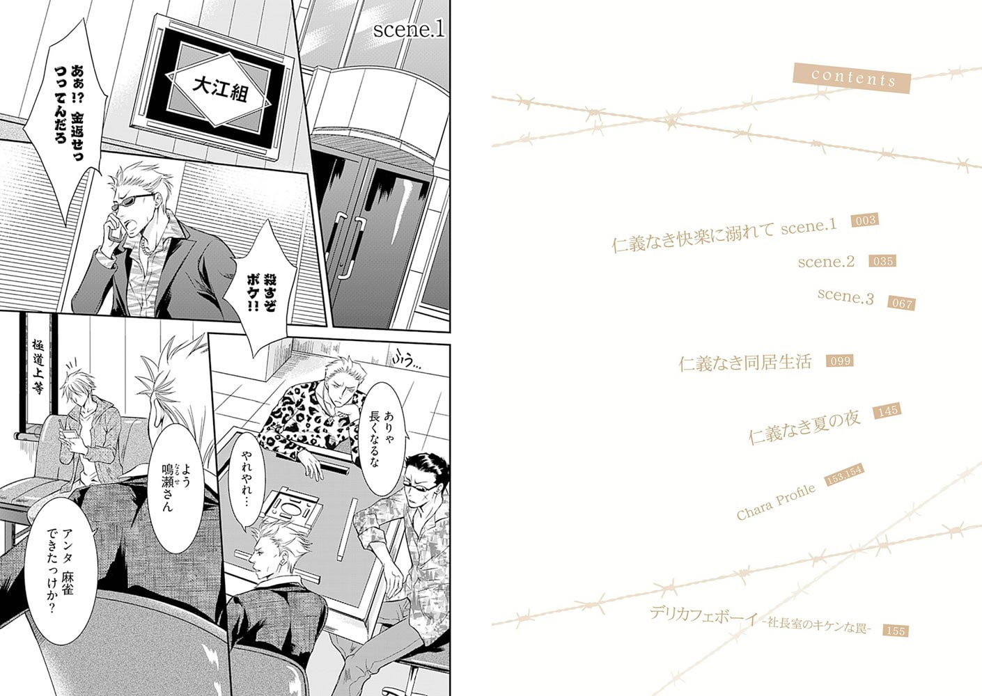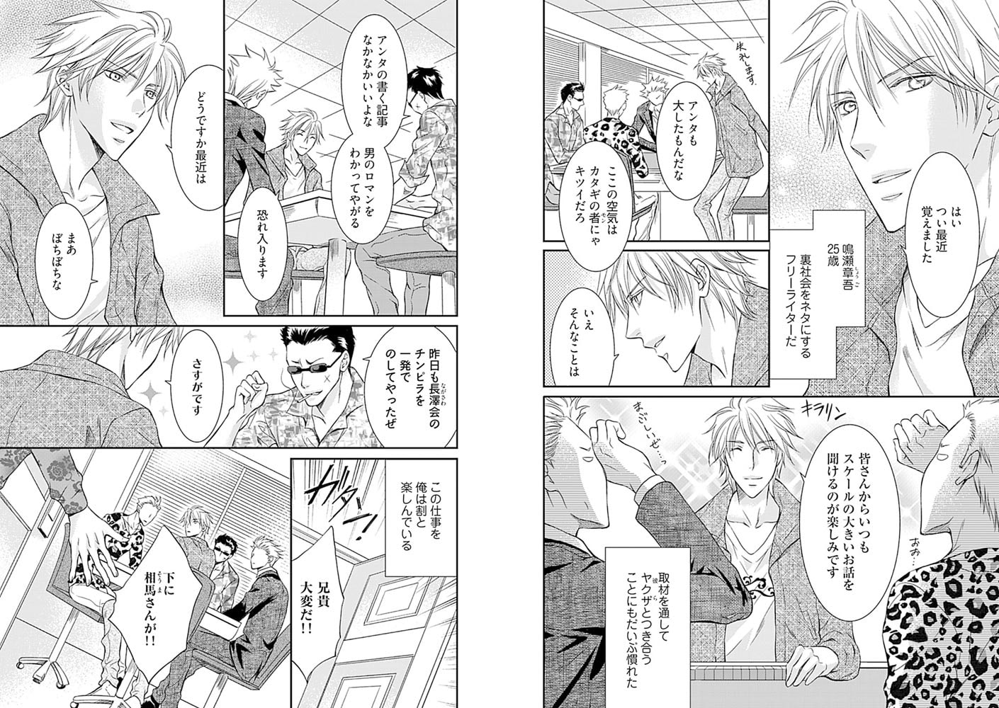 裏社会をネタにするフリーライターの鳴瀬章吾は、ある日、大江組ナンバー2の相馬怜司と遭遇し、その研ぎ澄まされた凶器のようなカリスマ性に一目で魅入られてしまう。興奮冷めやらぬうちに憧憬を込めて書き上げた記事は相馬本人に気に入られ、専属の情報屋にならないかと口説かれる。情報提供の見返りとして章吾が要求したのは、無謀にも──…。カリスマ若頭と、じゃじゃ馬ライターの甘く淫らなリスキーラブ