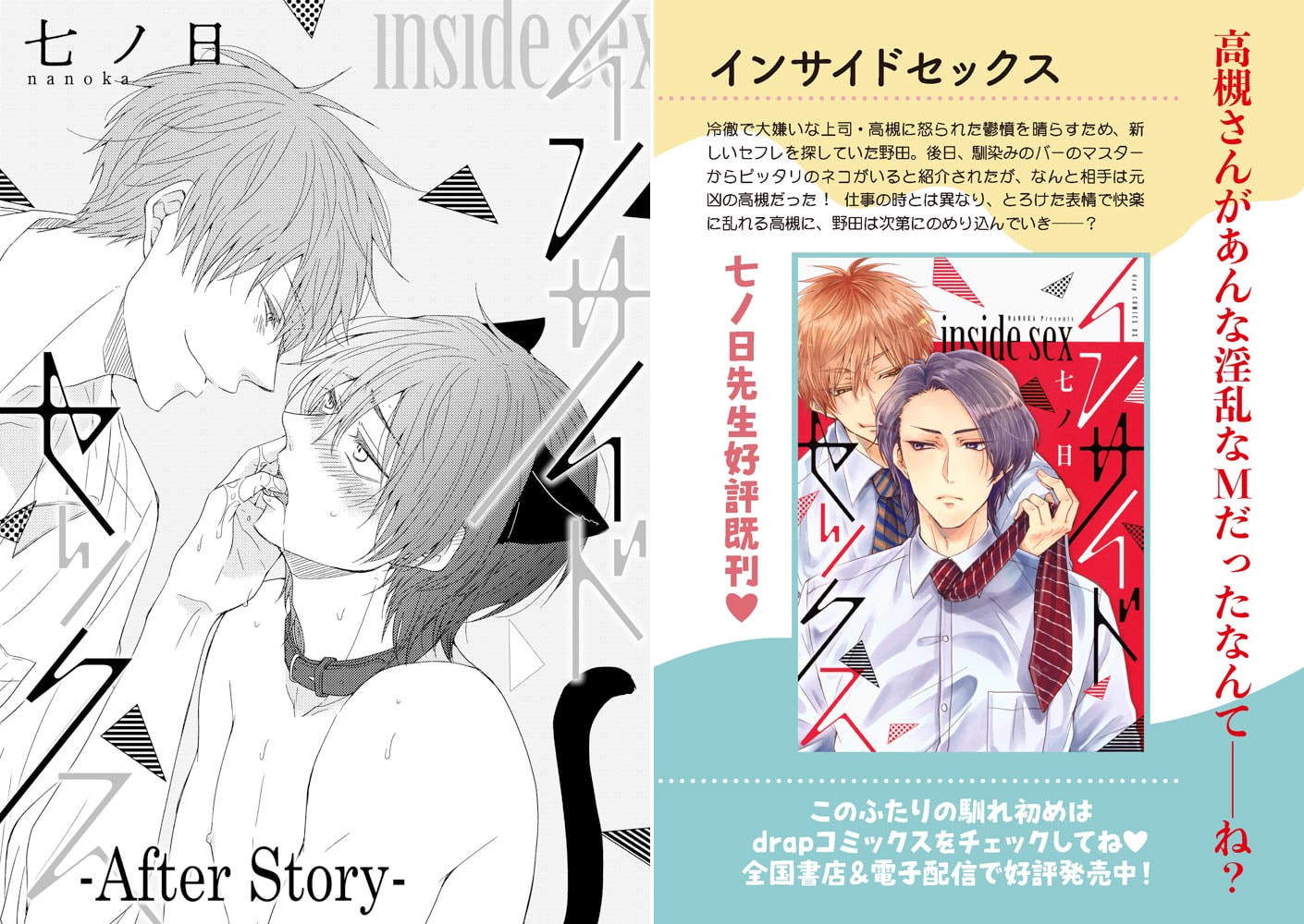 drapmilkはオール描き下ろしマンガ★ 七ノ日「インサイドセックス」新作マンガ&表紙描き下ろしで登場!! 七ノ日「インサイドセックス -After Story-」“高槻さん、俺と同棲しませんか?”??仕事では冷徹な上司・高槻の、快楽に乱れる二面性に惹かれて、あの手この手で口説き落とした野田。今は半同棲状態の恋人同士なのに、同棲を断られてしまった! 納得いかない野田は、エッチでたっぷり焦らしてご褒美をあげる作戦にでることに…? 椿野イメリ「追う恋追われる恋 5」運命の恋を探している理央は、センと出会い「気持ちいいセックス」を教えてトロトロに★ そんなセンの実家で家業を手伝いながらエッチが出来ない日々が続いたけれど、秘密の場所で深く繋がる二人…! 心が通じあい、実家での最後の夜はお互いに盛り上がって…ラブエロで最高にハッピーな最終話! チキンたまご「スーツのあとは制服で! 4」“抱いてるのは僕なんです、先輩じゃない!” 藤の青姦プレイを邪魔してしまった久間は、藤に強要されてセフレ関係に! 会社の上司を抱く、という倒錯的で淫らな関係にハマっていたけれど、藤が「初恋の先輩」と久間を重ねていると気づく。自分だけを見て欲しい久間は恋人のように抱いてしまい??? 酢ノモノ「アンモラルな関係 2」キャバクラの呼び込みで苦戦していた誠也は、超イケメンの太客をゲット! そんな高スペックな晴樹と連絡先を交換したら、なぜかラブホに連れ込まれてめちゃくちゃ抱かれてしまう★ 以来、セフレのつもりで付き合っていたら、「俺だけにして!」と独占欲でガツガツと気持ちよく攻められて…!? 今月号は、七ノ日先生の表紙が目印★ 最新コミックスdCDX「このお話はノンフィクションです。」も好評発売中! チェックしてね★
