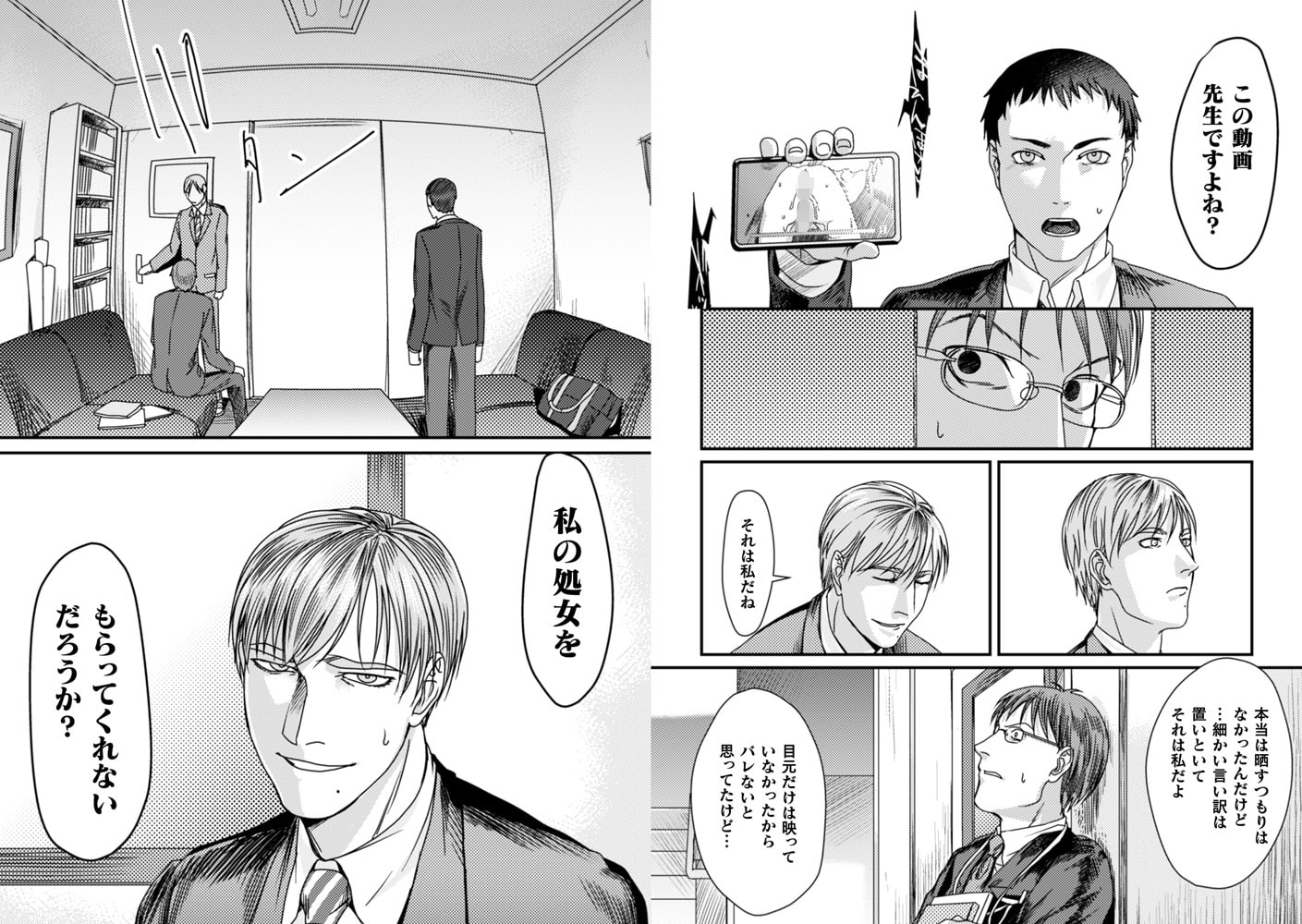 動揺もせずに自分だと認める白崎は、多田と金子に自分を犯してくれないかと頼み多田の目の前で金子に犯されながら処女喪失をする。