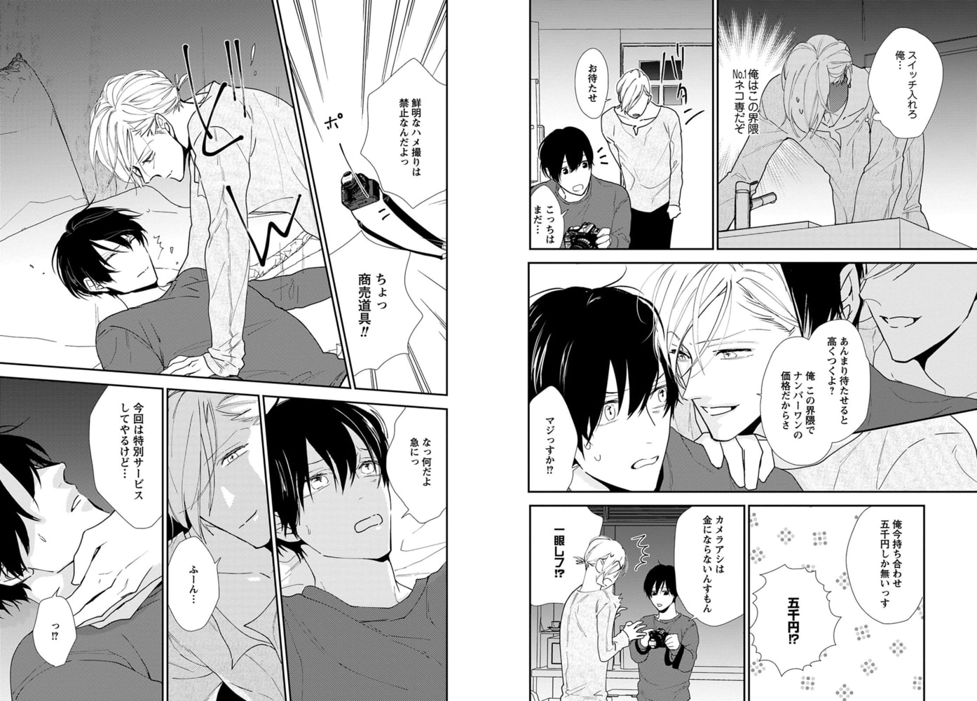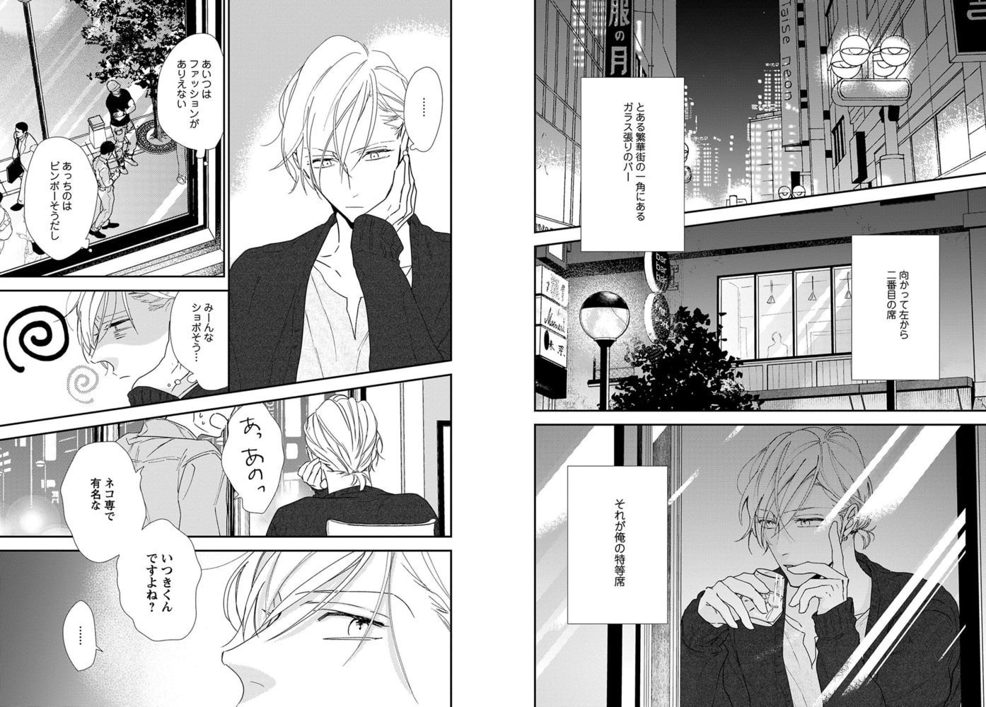 【ゲイバーのネコ人気NO.1×カメラアシスタントの純情子猫ちゃん】ネコ専の俺が「挿れたい」なんて思う日が来るなんて――。いつきはこの辺のゲイなら皆知ってる人気のネコ。今日も色んな男に金を積まれて身体を求められるが、どいつもこいつもピンと来ない…。ぼんやりと窓の外を眺めていたら、純情そうな爽やか青年がこっちを見てる!?目が合った!と思ったら店に入って来て「一目見てビビッときちゃって、アナタしか考えられない」ってなんつー誘い文句!そのままホテルに連れ込みキスすると、可愛い反応に思わず押し倒してしまい―――。