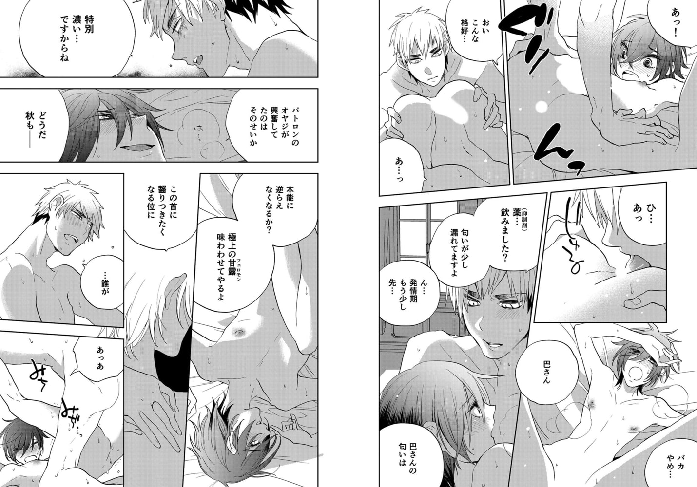 オメガの三人兄弟の末っ子として育てられた瀬戸羊介(せと ようすけ)は、やがて自身に訪れるはずの「運命の恋」に憧れ、それを待ち続けていた。そんな折、大学で「運命の番」を見つけられるという怪しげな仮面パーティーの噂を耳にする。目を輝かせて地下パーティーに潜り込む羊介だったが期待した相手には出会えず、それどころかフェロモンのせいでアルファに襲われる危機に…。そんな時に現れたのが、自治会長としてパーティーを調査していた愛里英一(あいざと えいいち)だった。偶然が導いた出会いだったはずが、二人は無条件に惹かれ合ってしまう。頭が沸騰し、本能のままカラダが支配されたがっているのを感じる羊介は、これがきっと運命の番と確信するのだが…!? 本能と心の矛盾が生み出すラブエレジー!!(単話版 第4話)