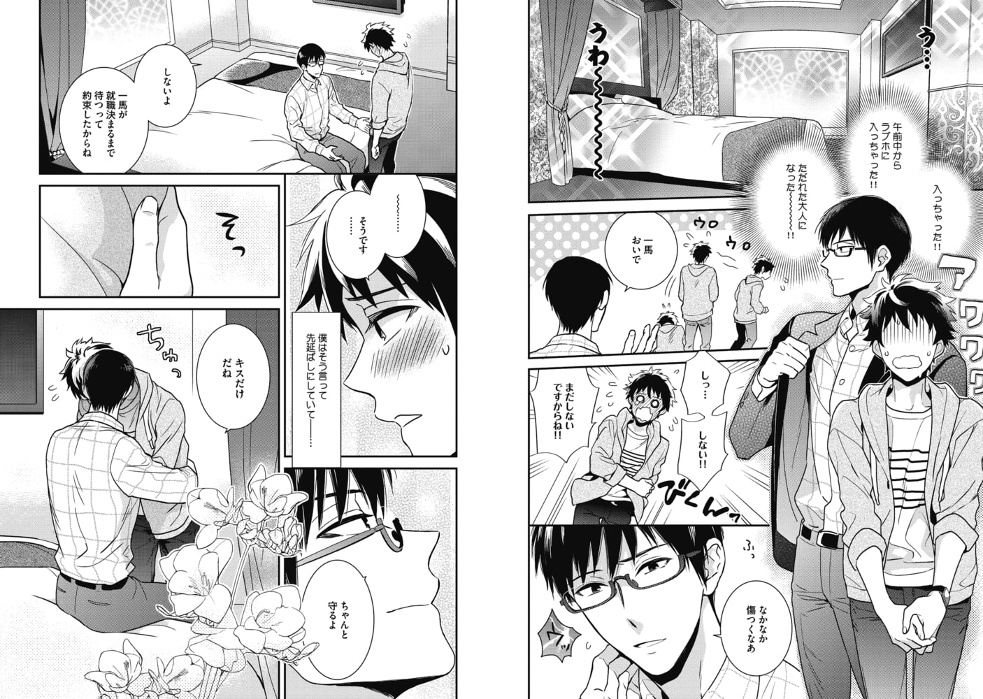 大学生の一馬と社会人の平は恋人同士。 平のことは大好きだけど、一馬はキス以上の関係になるのはまだまだ不安…。 そんなお預け状態に痺れを切らした平はあの手この手で一馬を開発し始めたけど――!? 触りたい…その……乳首!!!