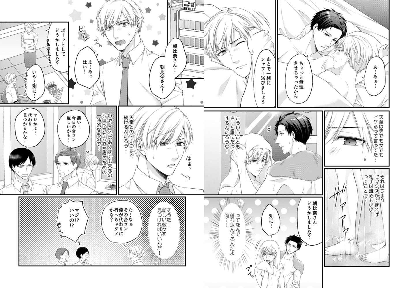 「お尻だけでイッちゃって、そんなに気持ちよかった?」彼女に3股かけられた挙句、振られてしまったリーマン朝比奈。たまたま居合わせた3股のうちの1人・天童と、失恋したもの同士ヤケ酒することに。女なんてもう懲り懲り―っと愚痴って飲んだくれ、気がつくとホテルのベッドの上。そしてなぜかギラギラした顔の天童に下半身をまさぐられている…?「俺、男もイケるし、アンタ美味そうだから食べさせて」なんて言いながらイヤラシく愛撫され、全身トロットロ。男なんかに抱かれて最悪なハズなのに、気持ち良すぎてイキまくってしまう。ついにはでっかいアレで奥まで突かれて――!?