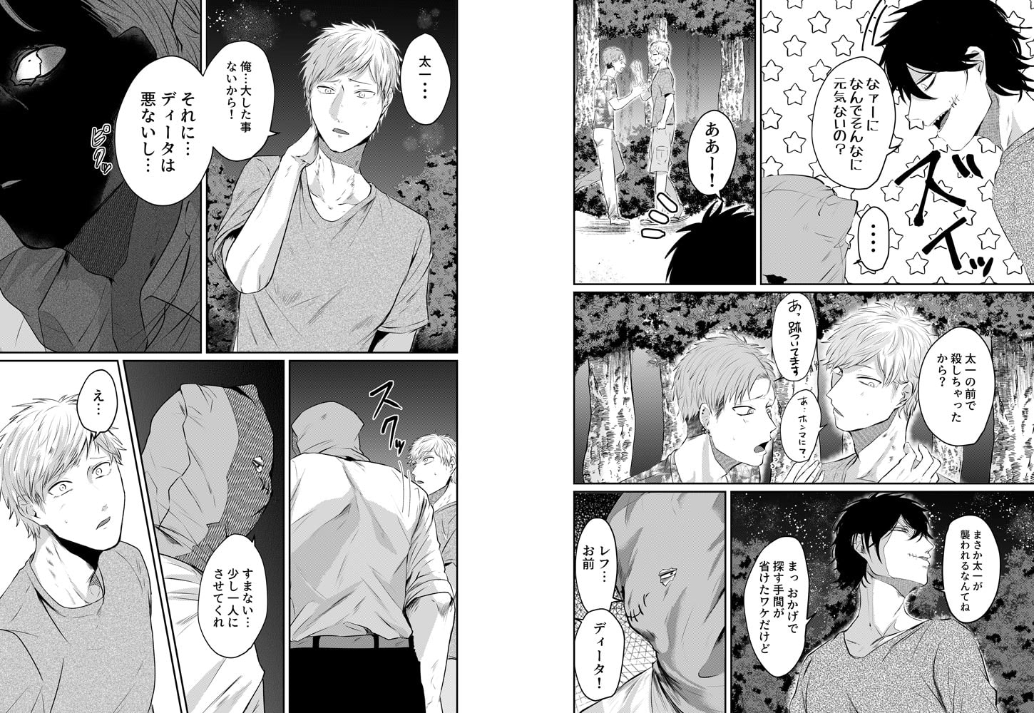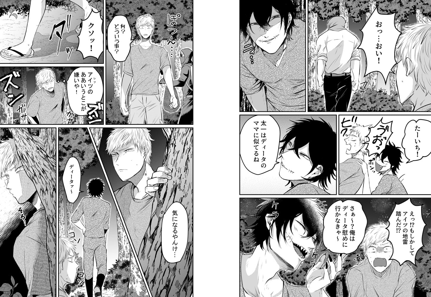 覆面殺人鬼に監禁されて処女を奪われました。─気が付くと知らない部屋で手足を縛られ監禁されていた太一。一人キャンプで殺人現場を見てしまい、殺人鬼に拘束されたらしい。俺の人生ここで終わりか…と思ったら耳を舐められた!なんやねん!かと思えば正面に椅子を置いて静かに見つめ始めた!ホンマになんやねん!!拘束を解かれたと思えば「惚れた」!?俺も殺しの対象ちゃうんかーーーい!!!!何とか逃げ出そうと自分も惚れたと嘘を吐いたら、いきなりデカすぎるアレを突っ込まれて!?慣らされていないせいで痛いはずなのに、どんどん気持ちよくなってきて…「声…抑えるな」アカン…はよ…イって…っ!覆面殺人鬼と関西人の歪な同居生活が今始まる!!