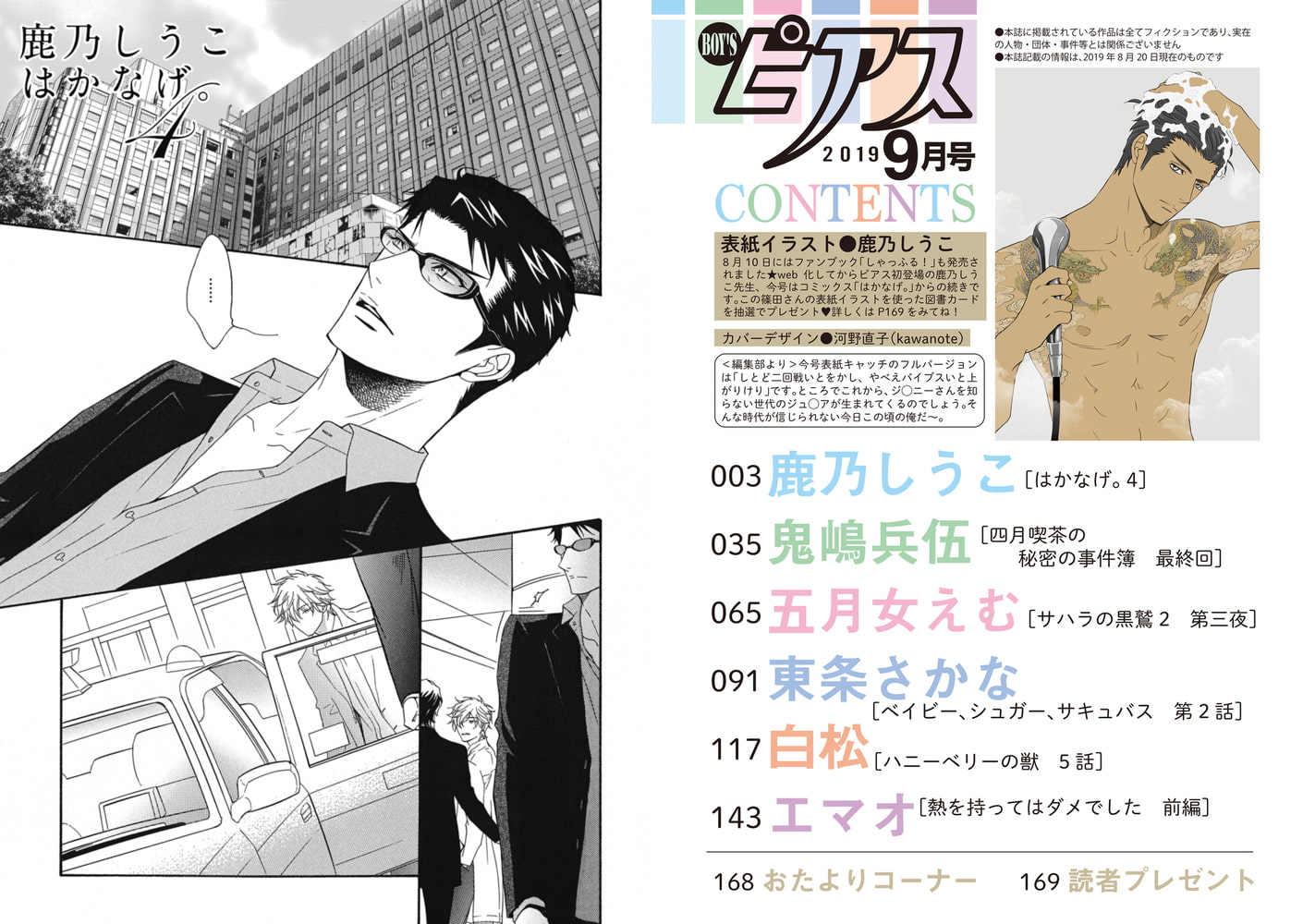 ●今号の表紙は鹿乃しうこ先生!図書カードの抽選プレゼント企画あります。応募締切は2019年9月20日。詳しくは本誌を見てね。