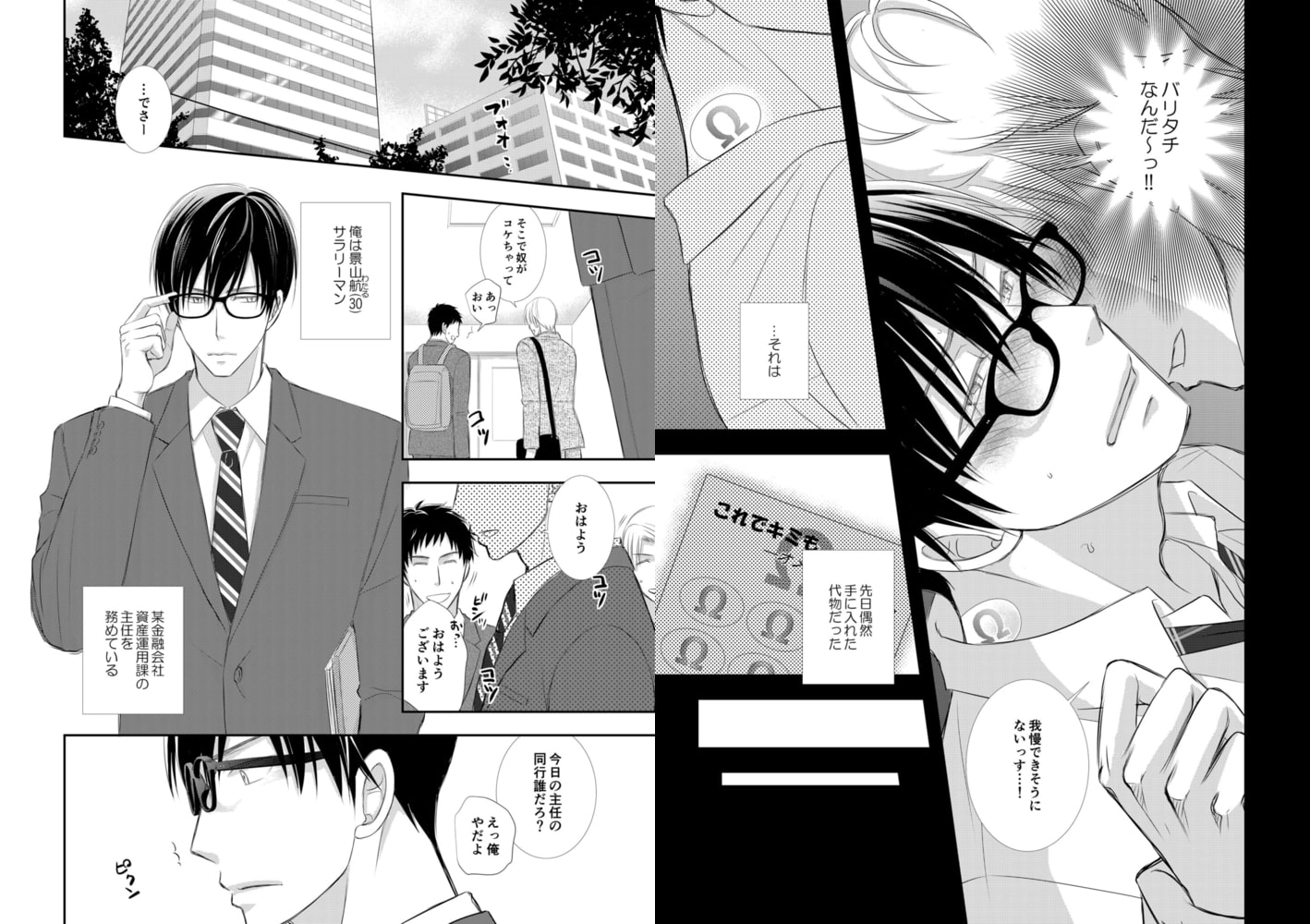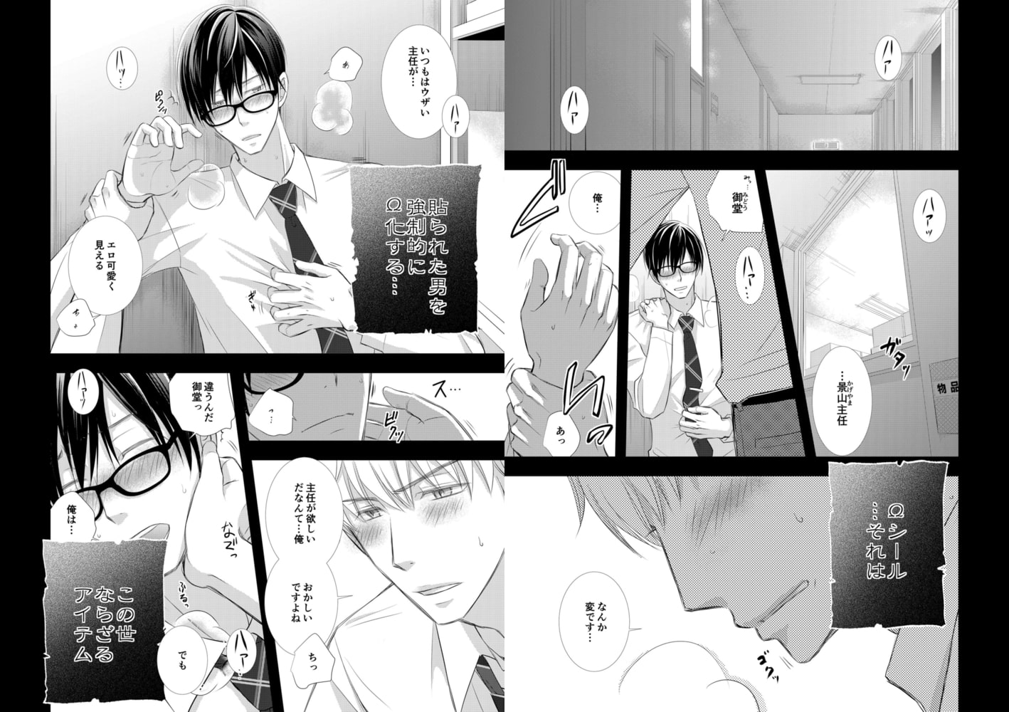 「俺…なんか変です…主任がエロ可愛く見えるんです…」バリタチの景山が偶然手に入れたのは貼られた男を強○的にΩ化する、この世ならざるアイテム「Ωシール」。バカバカしいと思いつつも、もしこれが本物なら密かに狙っていたワンコでノンケな部下の御堂をメス化できる…と思いつき、御堂を呼び出し気づかれないようシールを貼ろうとするが思わぬアクシデントでシールは自分の身体に張り付いてしまう…!急に発情するカラダ、御堂に抱かれたいという強烈な衝動に襲われて、思わず「お前に孕まされたい」と呟いてしまい…。景山が発するΩのエロフェロモンに反応して、御堂も欲情。ハメるはずが逆に部下にハメられて――!?
