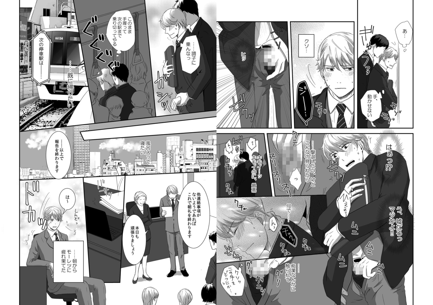 「いっぱい虐めてあげますね」――ある朝いつものように通勤していた目黒は、電車で痴○にあってしまう。初めての体験に狼狽えながらもなんとかその場はやり過ごすが、帰宅途中同じ痴○に襲われ…今度は後ろまで弄られてしまい…!?すんでのところで部下の高井田に救われるが、たかぶった体の熱はおさまらず…。落ち着くために二人でトイレに入るが高井田から突然キスをされ下半身まで扱かれ始めて…!?いつもはワンコみたいにまとわりついてくるクセに、急に見せた男らしい顔付きに体はさらに熱くなっていき…。困惑しつつも何故か高井田を受け入れてしまう目黒は…?執着系オオカミ部下×強気ノンケ上司の歪な恋が始まる――。