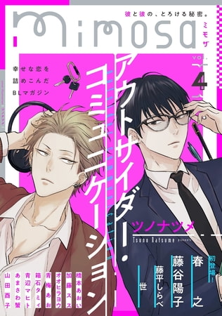 幸せな恋を詰めこんだBLマガジン『mimosa』vol.4の表紙はツノナツメ「アウトサイダー・コミュニケーション」。優等生の岩代と不良の関、正反対の二人の仲は深まり、そしてついに…!? 初登場は春之、藤谷陽子、藤平しらべ、世。好評連載はもちろん、新連載と読み切りをたっぷり400ページ超でお届けします!