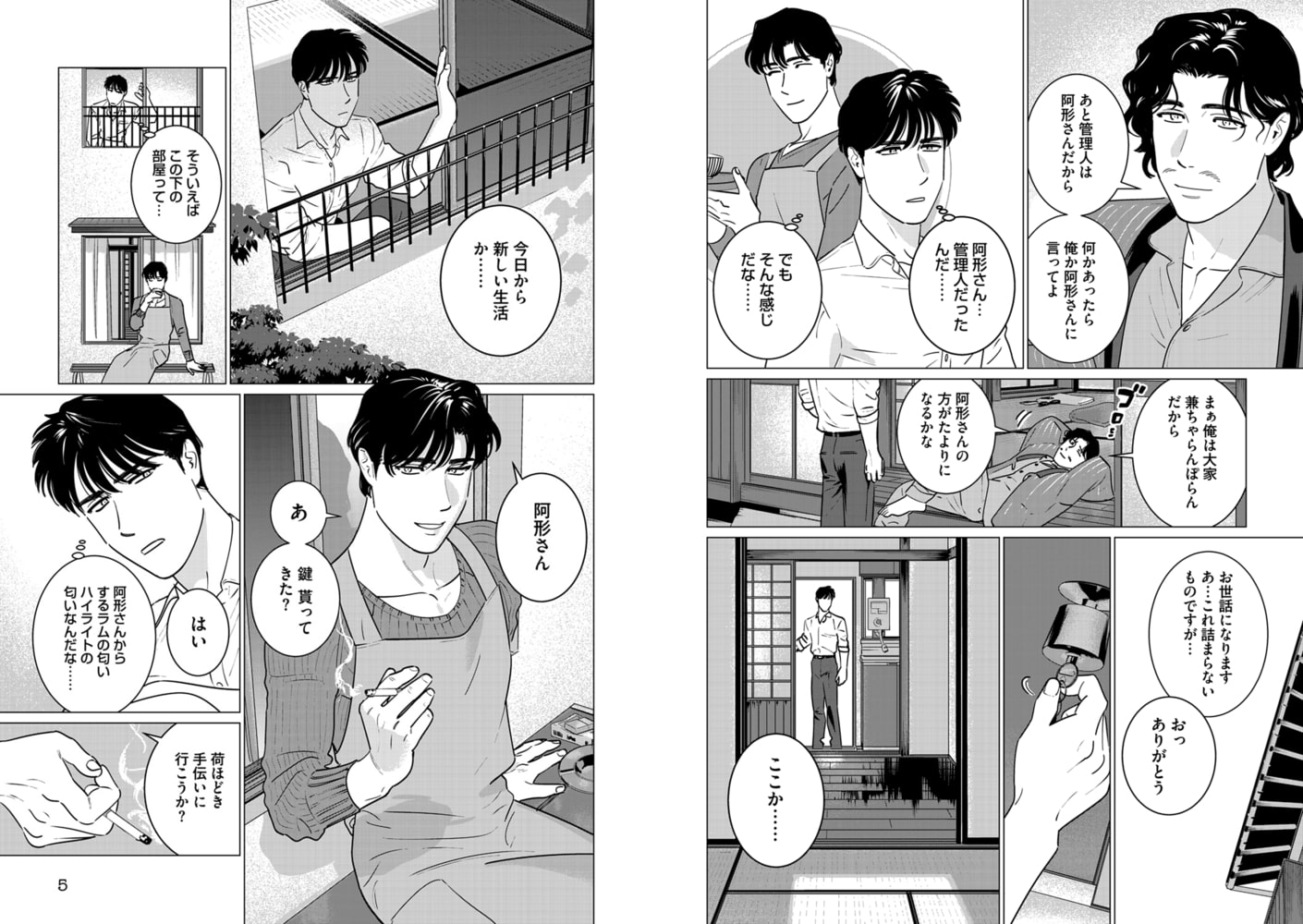 阿形の優しい気遣いやアパートの住人との交流で癒され、