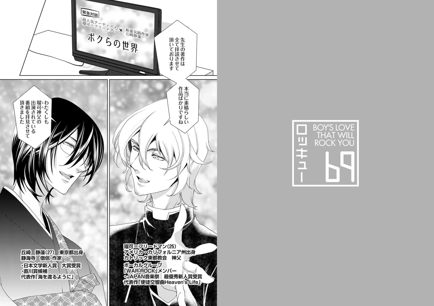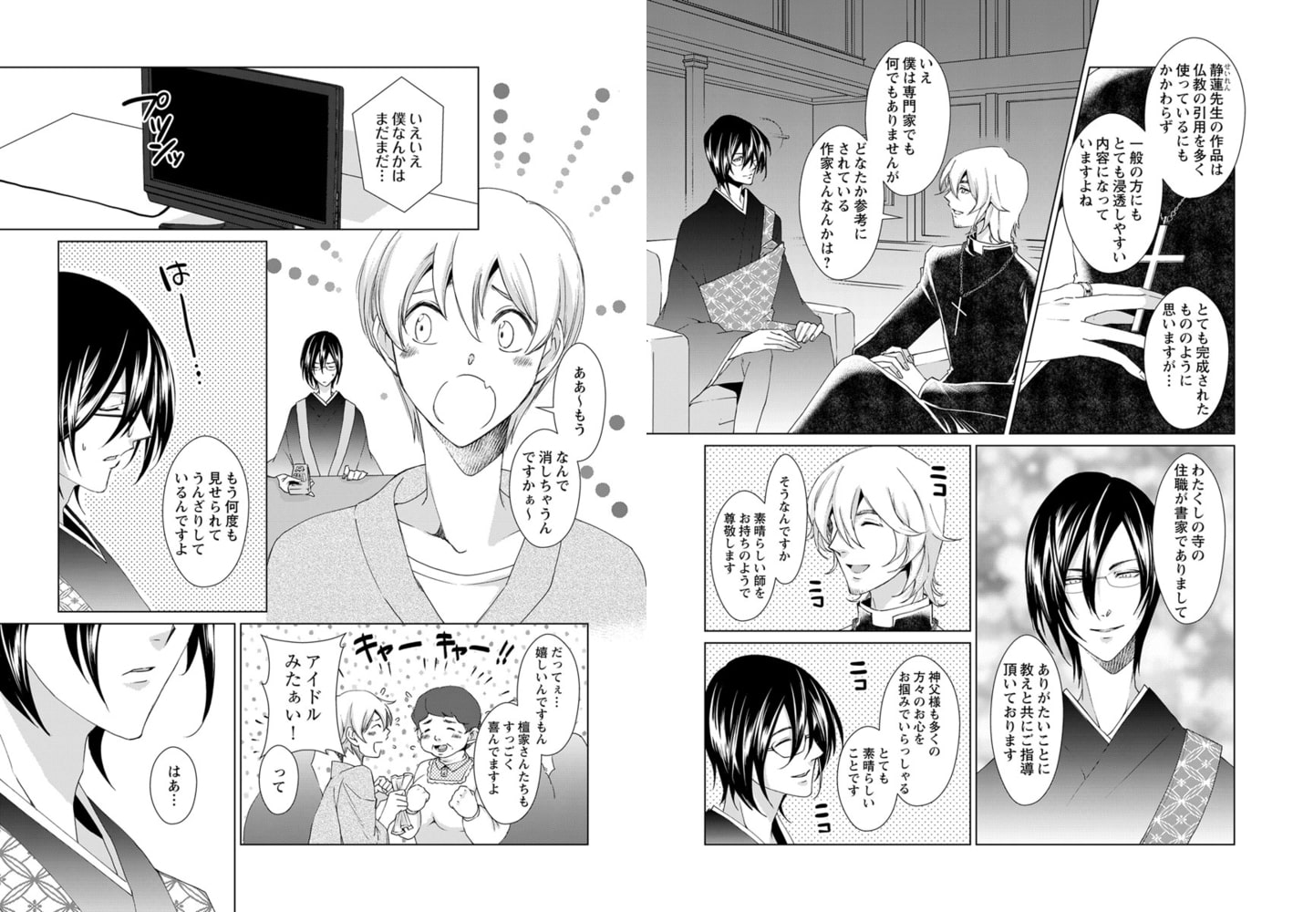 神父でタレントの瑠可=フリードマン(25)と僧侶で作家の丘崎静蓮(27)は、面識はないものの、お互いの存在を意識している間柄。そんなある日、瑠可が出演中のTV番組の中で、静蓮のファンであることを公言したのがきっかけで、二人は対談をすることに!? 檀家の人たちが喜ぶからと、しぶしぶ出演を承諾した静蓮だったが、控室で瑠可に、いきなりキスをされ、カラダを奪われてしまう。その時のことがバレてしまうことを恐れていた静蓮だったが、案の定それをタテに瑠可から呼び出され、ついにはホテルまでついていってしまう…育ての親・住職からつけられた体の痣のことを尋ねられた静蓮は、その事実をひた隠しにするが…!? 心は抗っても、カラダはふしだら――坊主が神父に上手に御棒をシコられた!?