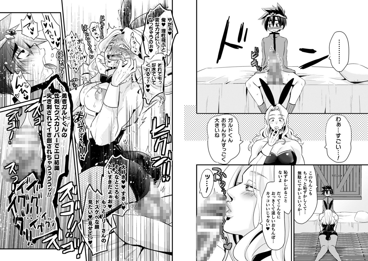 そこでみたのは可愛らしい外見を裏切る、ドでかい勇者チ○ポ! 思わぬ自体に発情したリリーは勇者の性剣をナメたり、ハメたり、乱れまくりイキ倒されるのであった……