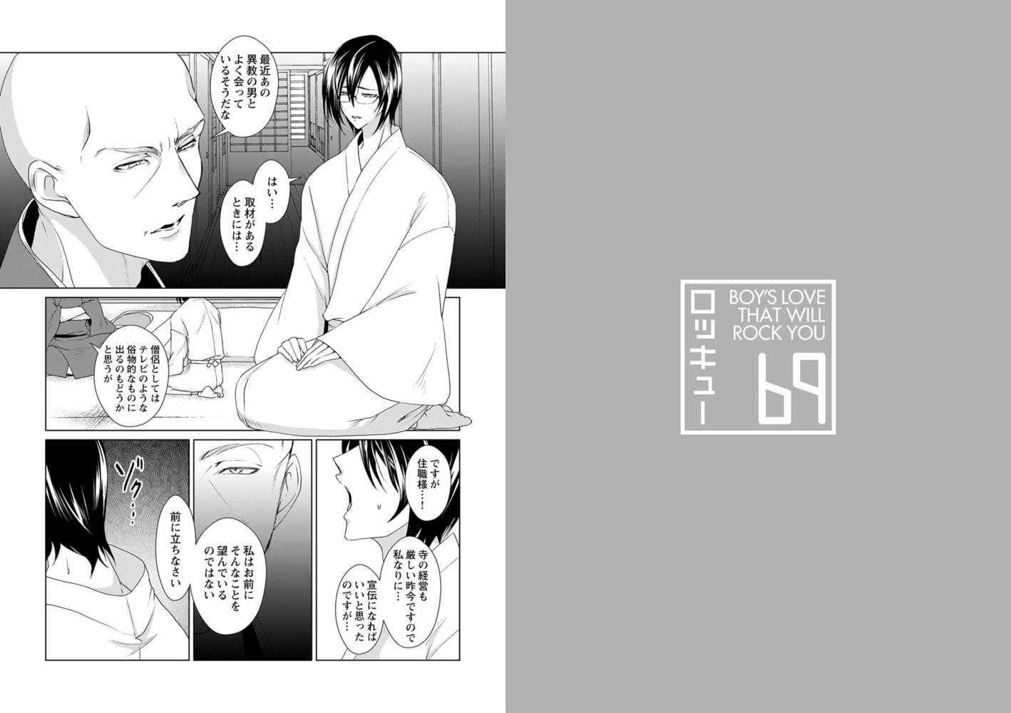 神父でタレントの瑠可=フリードマン(25)と僧侶で作家の丘崎静蓮(27)は、面識はないものの、お互いの存在を意識している間柄。そんなある日、瑠可が出演中のTV番組の中で、静蓮のファンであることを公言したのがきっかけで、二人は対談をすることに!? 檀家の人たちが喜ぶからと、しぶしぶ出演を承諾した静蓮だったが、控室で瑠可に、いきなりキスをされ、カラダを奪われてしまう。その時のことがバレてしまうことを恐れていた静蓮だったが、案の定それをタテに瑠可から呼び出され、ついにはホテルまでついていってしまう…育ての親・住職からつけられた体の痣のことを尋ねられた静蓮は、その事実をひた隠しにするが…!? 心は抗っても、カラダはふしだら――坊主が神父に上手に御棒をシコられた!?