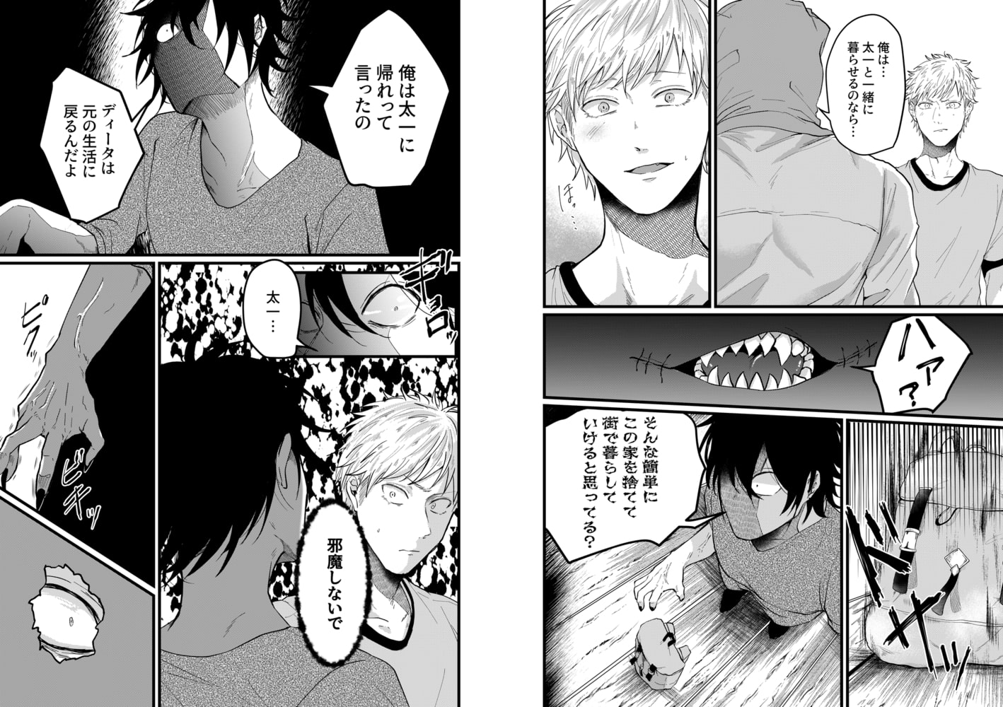 覆面殺人鬼に監禁されて処女を奪われました。─気が付くと知らない部屋で手足を縛られ監禁されていた太一。一人キャンプで殺人現場を見てしまい、殺人鬼に拘束されたらしい。俺の人生ここで終わりか…と思ったら耳を舐められた!なんやねん!かと思えば正面に椅子を置いて静かに見つめ始めた!ホンマになんやねん!!拘束を解かれたと思えば「惚れた」!?俺も殺しの対象ちゃうんかーーーい!!!!何とか逃げ出そうと自分も惚れたと嘘を吐いたら、いきなりデカすぎるアレを突っ込まれて!?慣らされていないせいで痛いはずなのに、どんどん気持ちよくなってきて…「声…抑えるな」アカン…はよ…イって…っ!覆面殺人鬼と関西人の歪な同居生活が今始まる!!