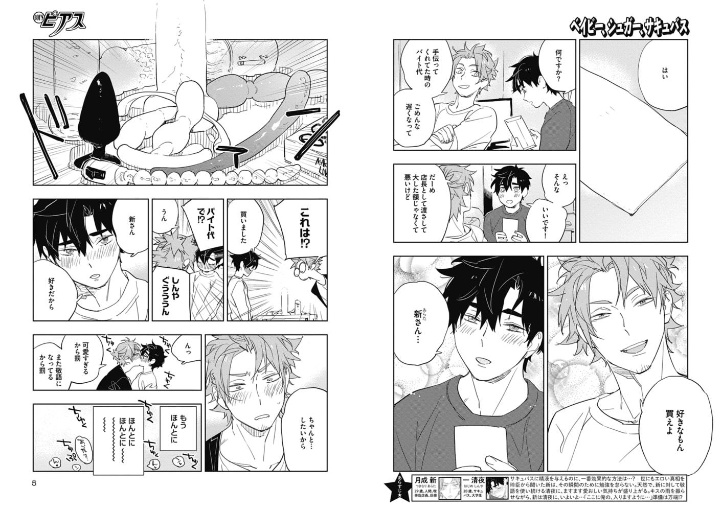 新の巨根を受け入れるため、バイト代でバイブを用意した清夜。それらは清夜の面倒を何かと見るインキュバス・玲臣の見立てだという。仲がよすぎる清夜と玲臣を心配する新だが、清夜は断言する、インキュバスはサキュバスに反応しないと。充分に慣らし、そしてついに…!!