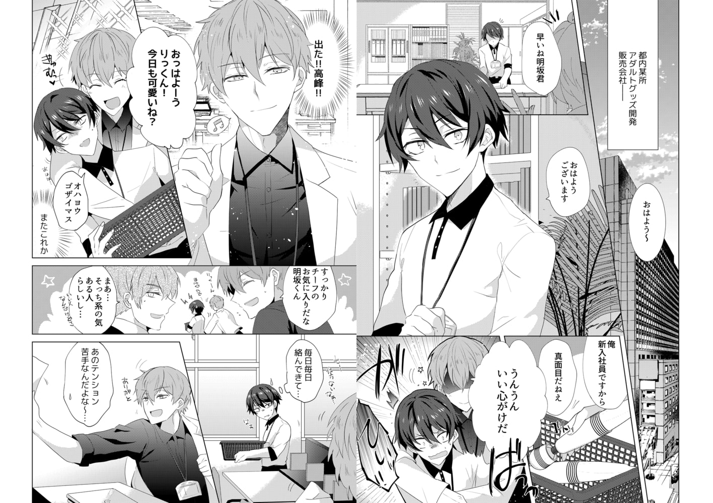 「ほら、カラダは気持ちいいって言ってるよ?」アダルトグッズの制作会社に就職したばかりの陸。開発メンバーとして頑張りたいのに、なぜか変人上司・高峰に気に入られて毎日うんざり…。ボディタッチは多いし口説かれるし…俺ノンケだから、そっちの気なんか無いっての!そんなある日、高峰からピンクローターのテスト係に任命されてしまう。仕事だし割り切ってやろう!そう思ってたのに…ローターを乳首に当てられた瞬間、アソコがずくんと疼いちゃって!?最初は感じてないフリをしてたけど、高峰の手はどんどんエスカレート。執拗に勃ちかけた股間をバイブで責めれられたら…我慢デキなくてもう、イクッ!弄られるうちに感度も良くなっちゃって…俺がオモチャにされるとか、嘘だろ!?