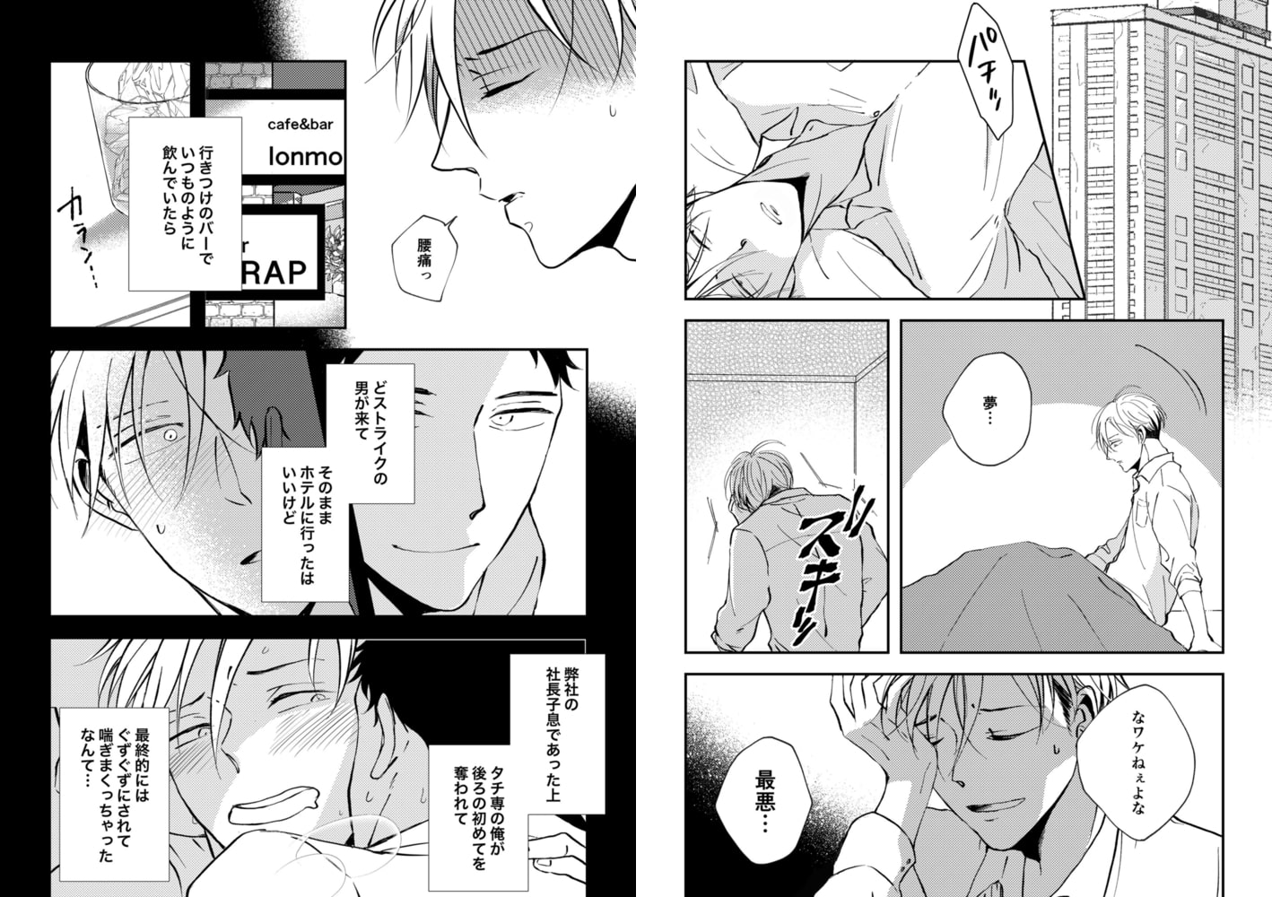 「ここに挿れると気持ちいいの、知ってるでしょ?」真性ゲイでタチ専の井口は、ある晩行きつけのゲイバーで好みドンピシャな那須と出会う。こんなチャンスはない!と早速ホテルへ誘い、いざ抱こうとするも逆に襲われてしまい…!?バックバージンを奪われて、淫らに喘がされてしまったことに落ち込む井口だったが、もう顔を合わせることもないだろう、と無かったことにしようとする…しかし次の日、職場に新人としてやってきたのは昨日自分を襲った那須で――!?強気攻めクール後輩×自称バリタチ先輩、一夜の過ちから始まる御曹司と会社員のポジションバトルラブ!