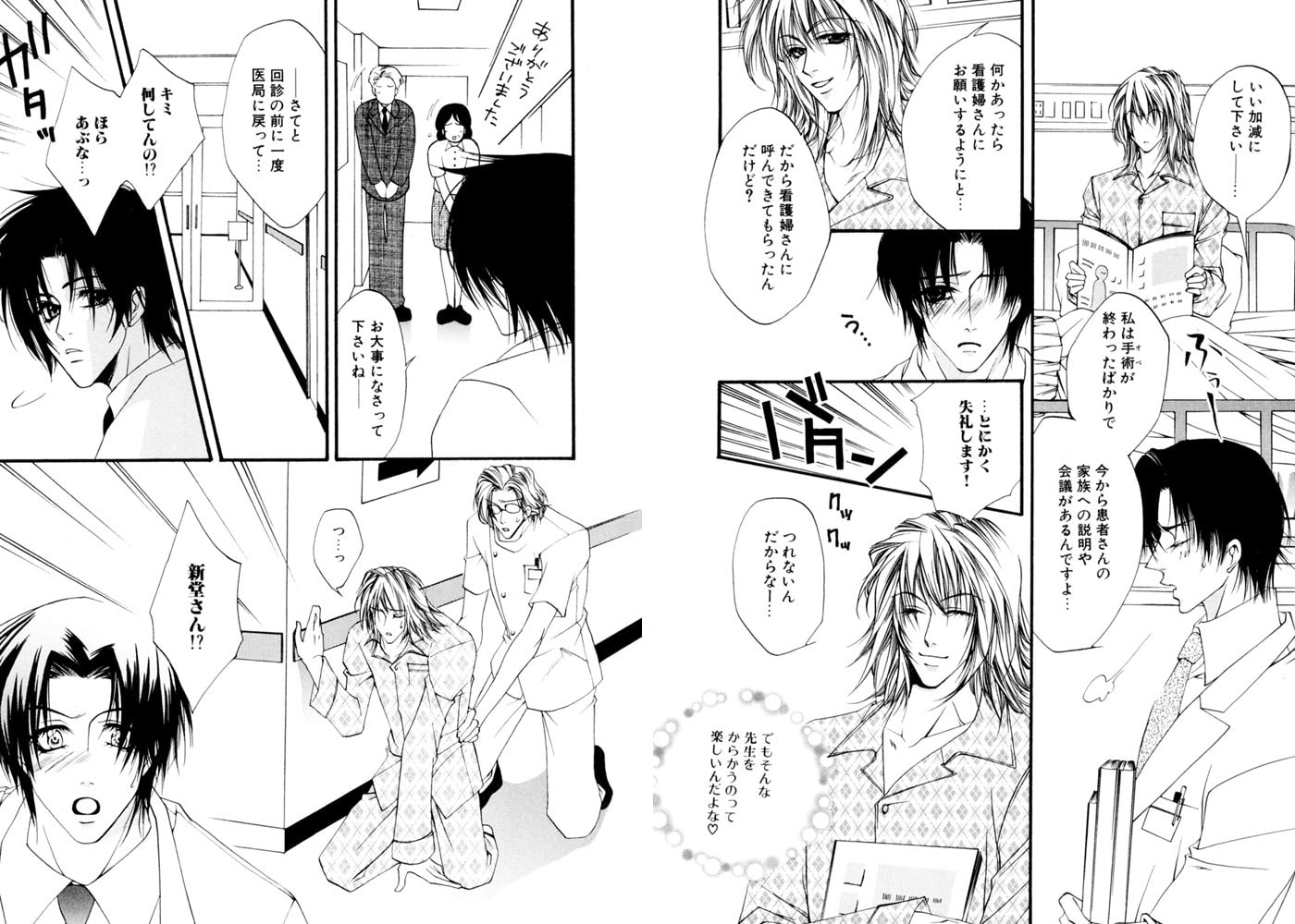 そんなある日、奔放な入院患者、新堂翼に「俺、たまってるんだ。これも治療のひとつと思って?」と猛烈に迫られ、病室で激しい情事をくりひろげてしまう。 その悦びが、やがては恋心に変わって行き……