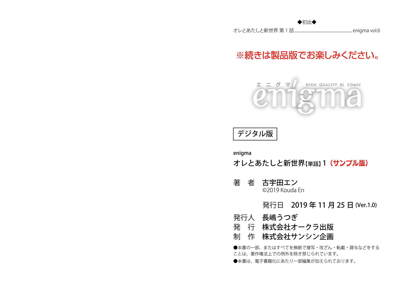 【本作はWEB雑誌「enigma」及び、enigmaコミックス「オレとあたしと新世界」に収録されています。重複購入にご注意ください。】