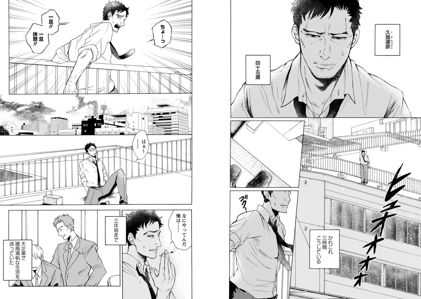飛び降りる勇気も出ず空腹が先にたち、しかも死ぬ前に初恋の「男」に会いたいと思いとどまった久我は、友人の探偵の協力もあり、初恋の男・充のもとへ。